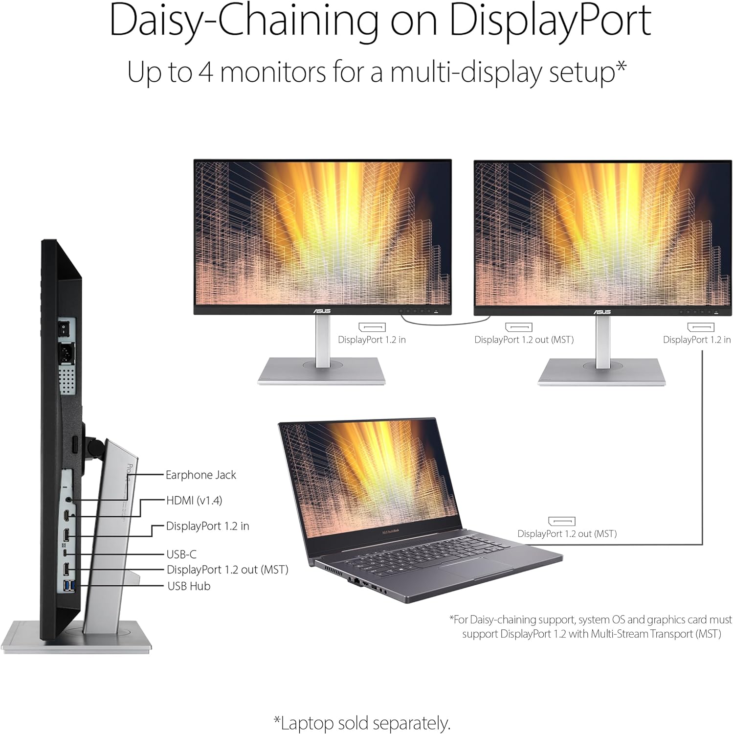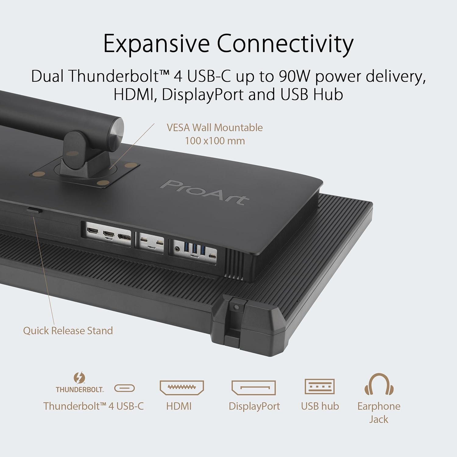 ASUS ProArt Display PA279CV 27” 4K HDR UHD (3840 x 2160) Monitor, IPS, 100% sRGB/Rec. 709, ΔE < 2, USB-C DisplayPort HDMI USB hub, Calman Verified, Eye Care, Tilt Pivot Swivel Height Adjustable