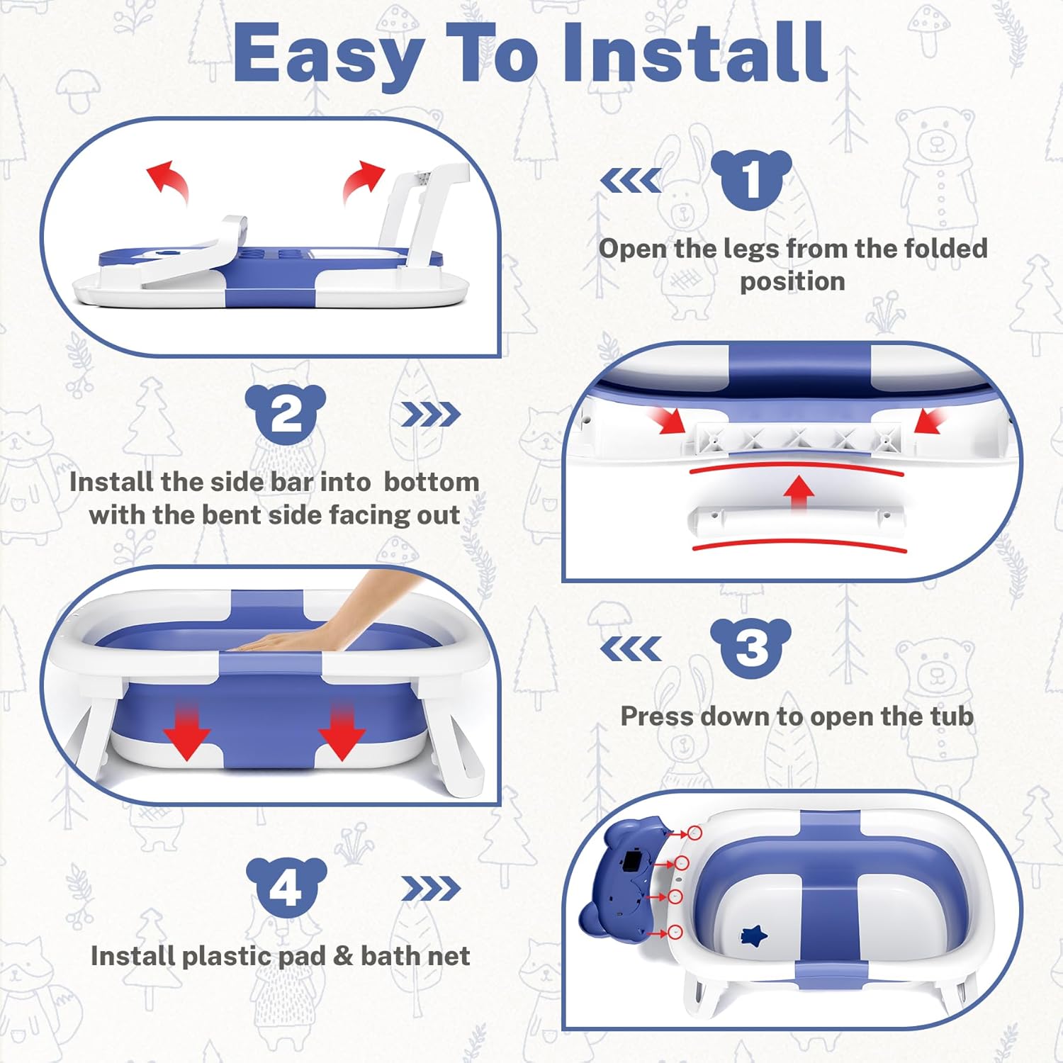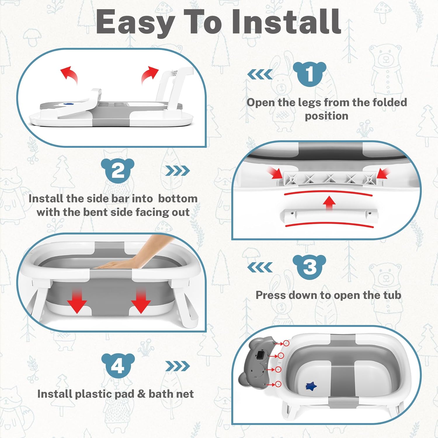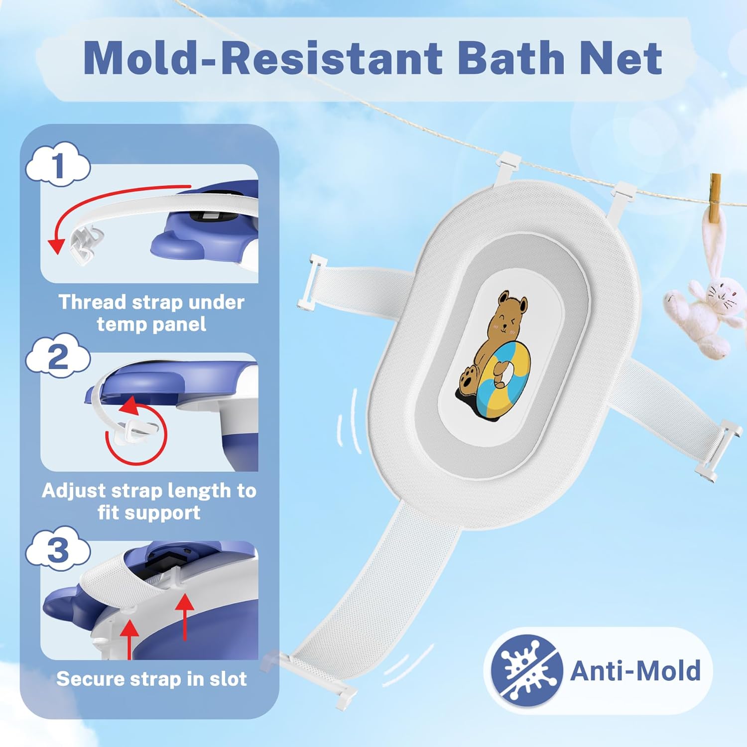 - Comfortable & Supportive Bath Net: Foldable baby bathtub features a soft interior that gently supports your baby's spine, ensuring a safe bath time experience