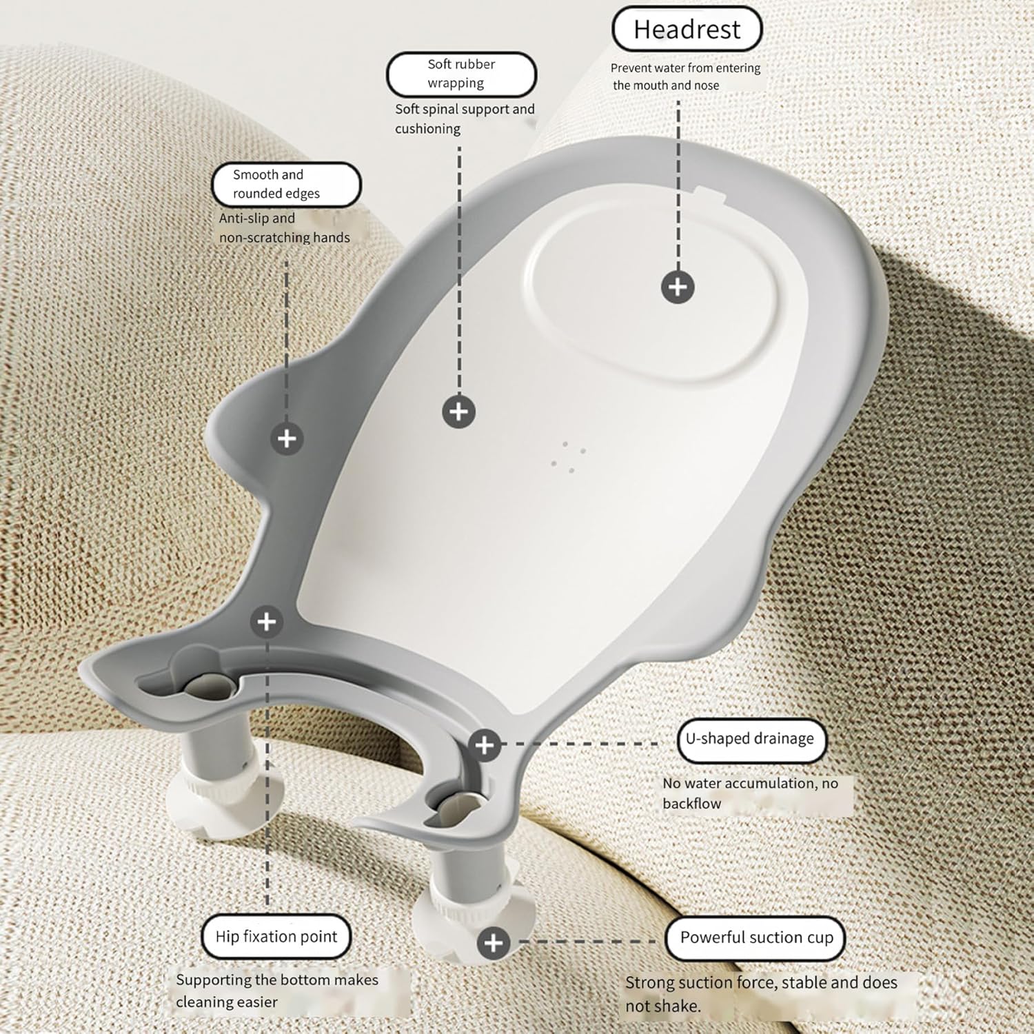 - Adjustable Comfort Fit: The baby bathtub features a soft, U-shaped design with adjustable support that molds perfectly to your baby's delicate body, ensuring maximum comfort and security during bath time for infants aged 0-6 months. Non-slip materials keep your baby safe and cozy.