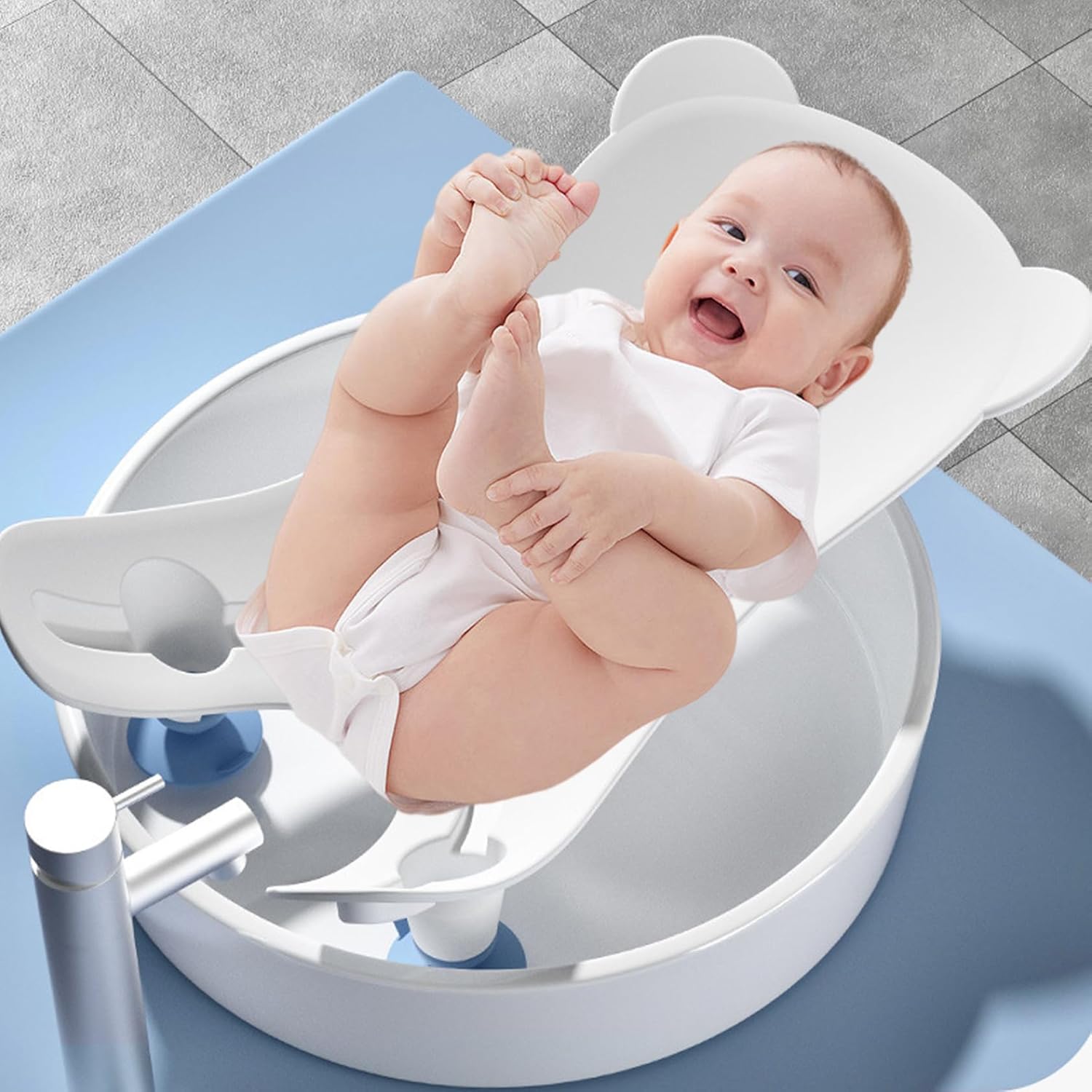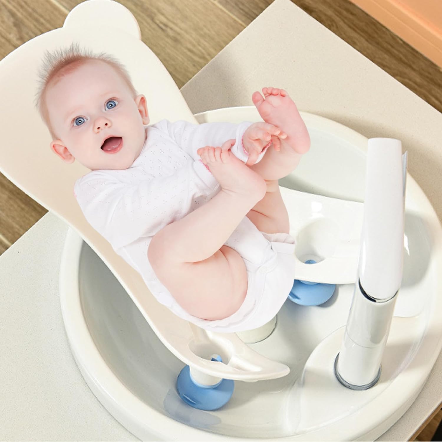 - Strong Suction Cup Stability: Equipped with a powerful suction cup, this sink baby bath attaches firmly to your countertop or sink base, preventing unwanted movement so you can focus fully on gently washing your baby. Baby Bathtub for Sink