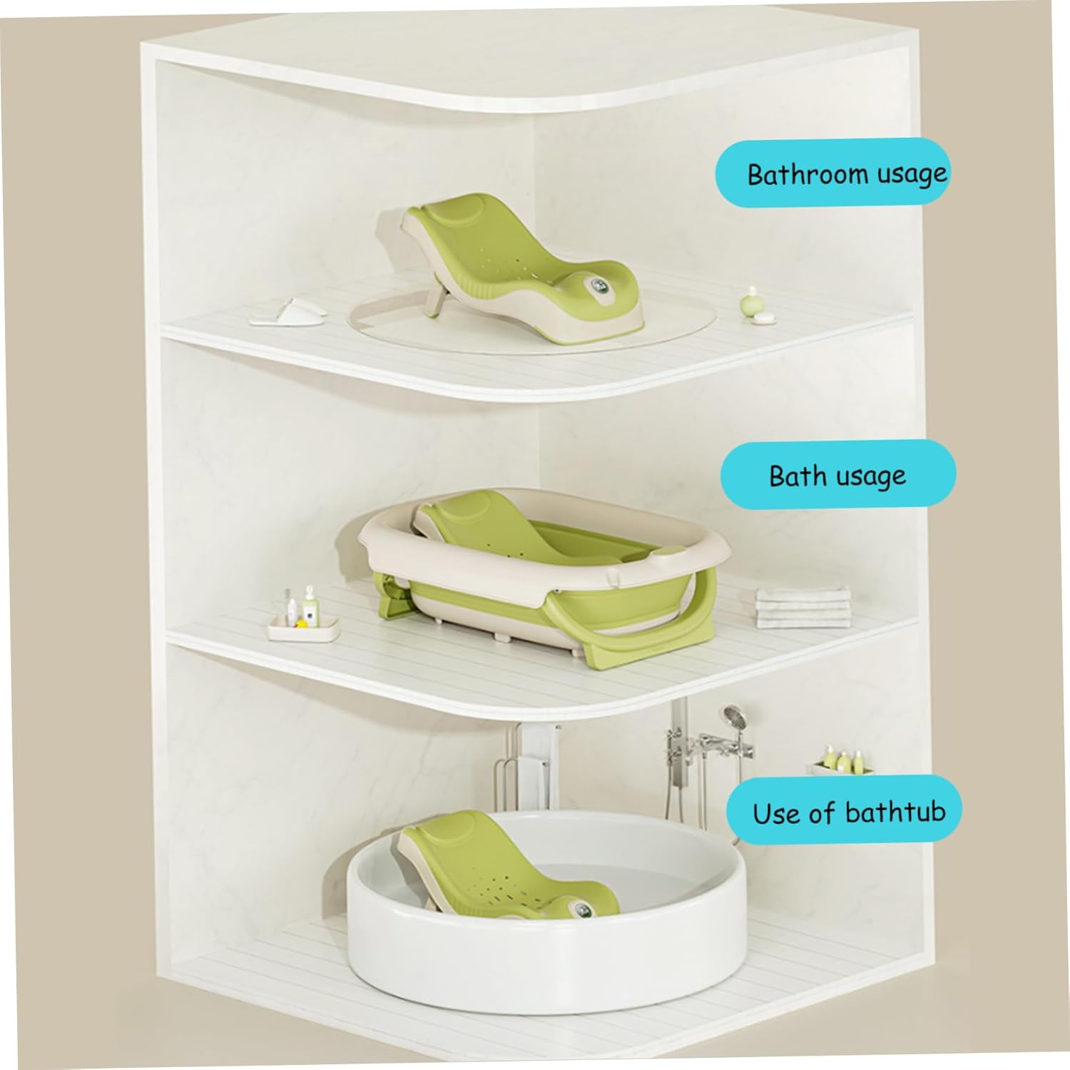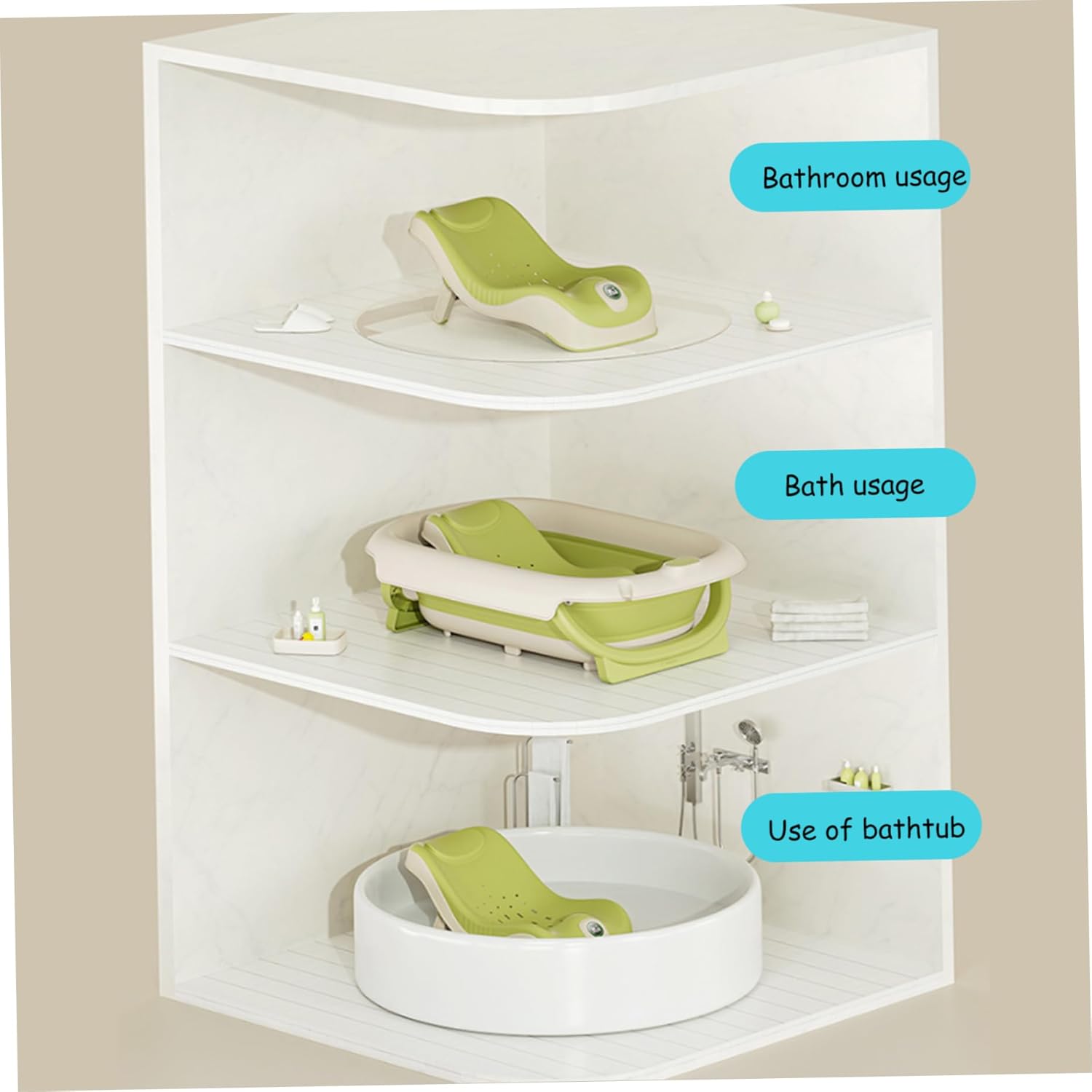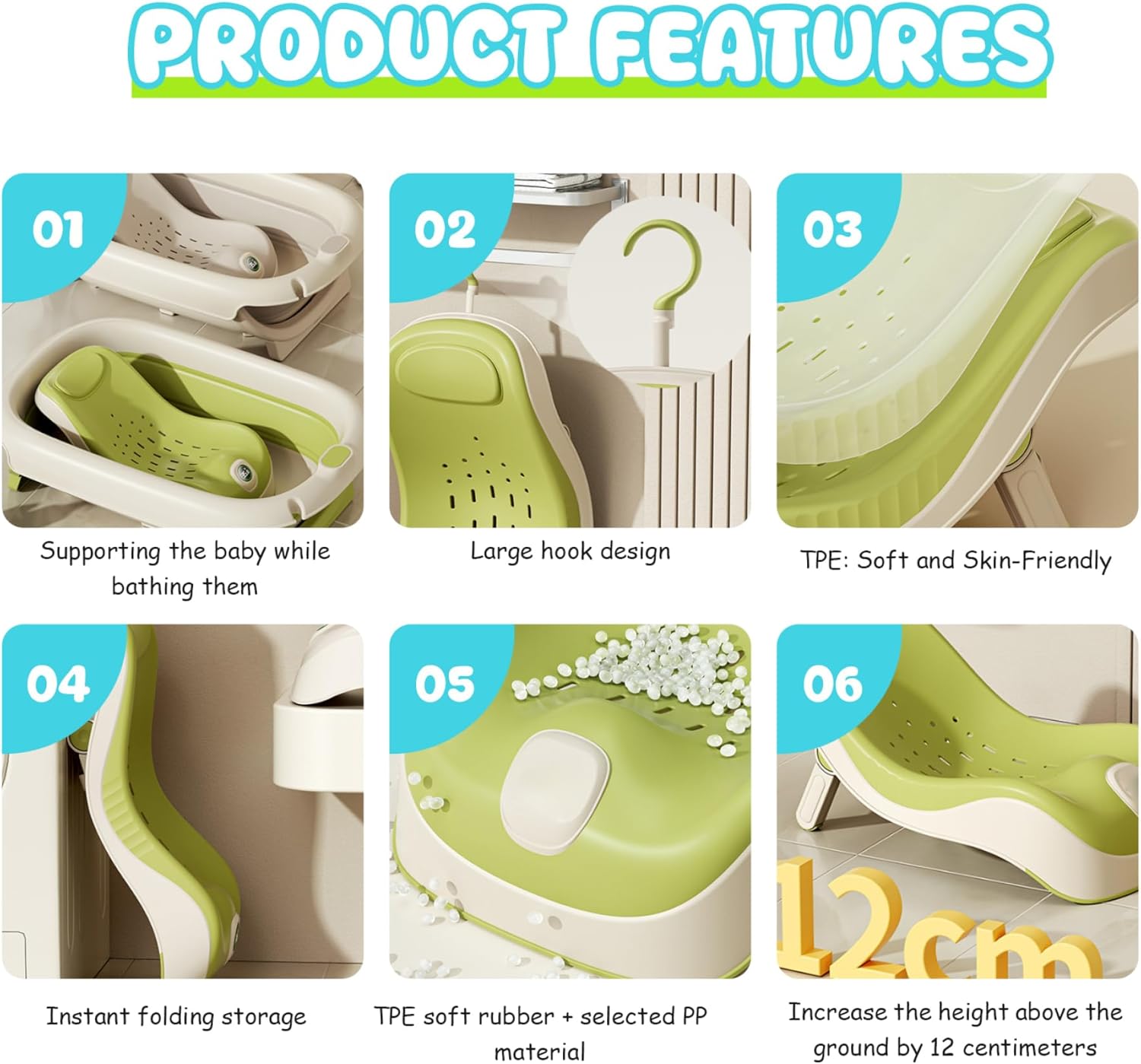Baby Sink Bath, Adjustable Height Ergonomic Baby Bath Support with Temperature Reminder & Drainage Hole, Foldable Portable Infant Bathtub with Hook for Home Travel, Green, Sink Bather for