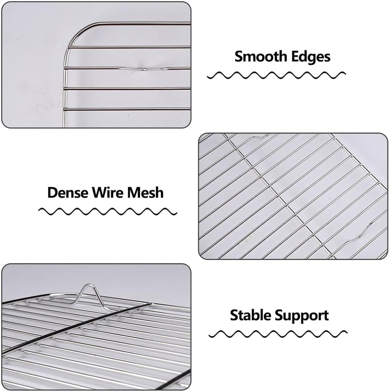 •  SAFE MATERIAL: Made of high quality stainless steel, the non-toxic baking trays and grid racks will not release any chemicals at high temperatures, uncoated design for direct contact with food surfaces, suitable for your daily baking.