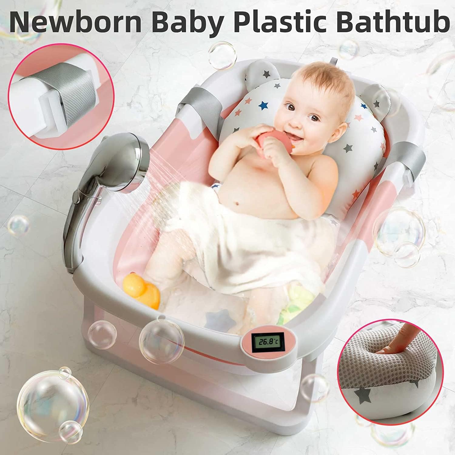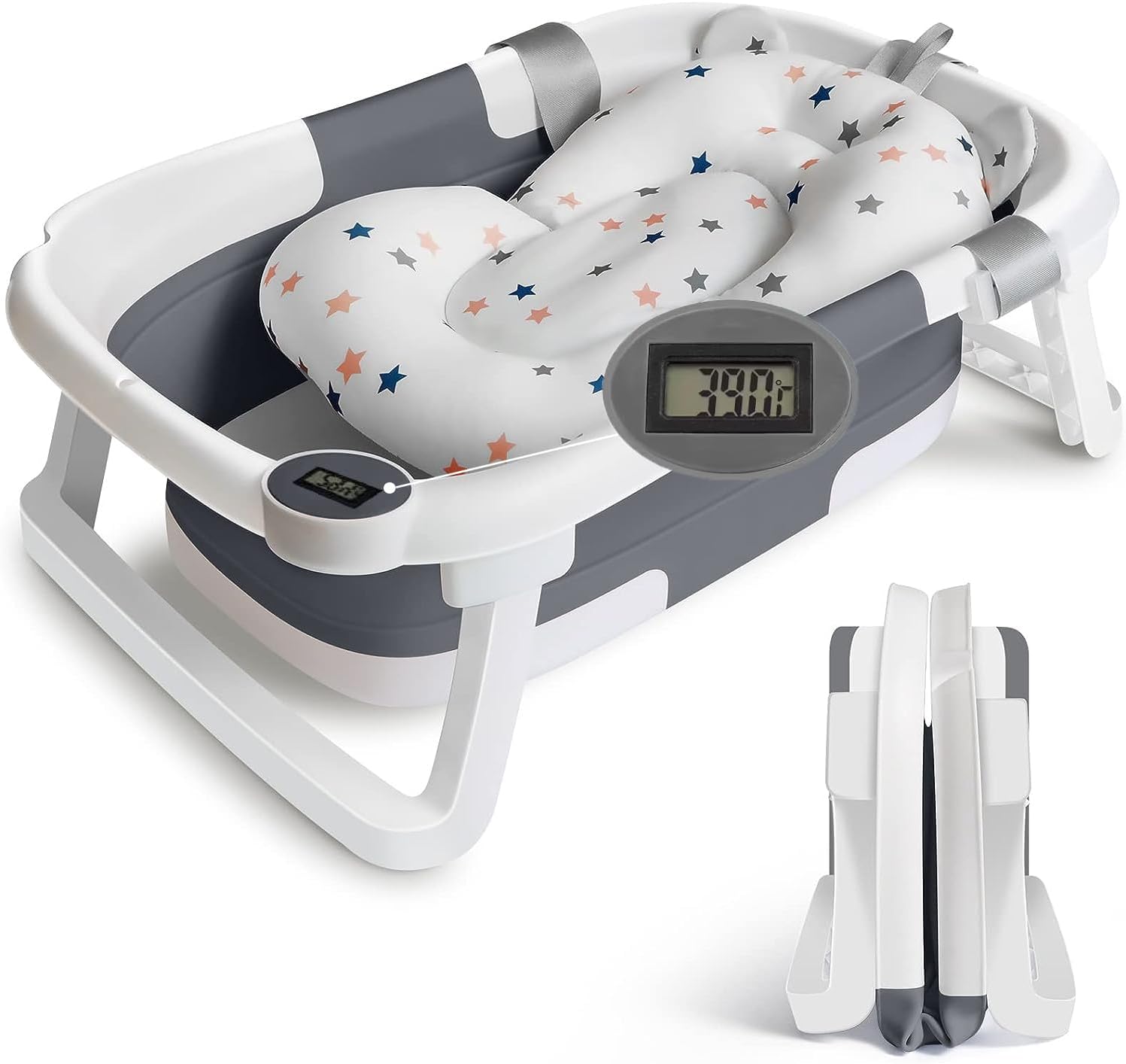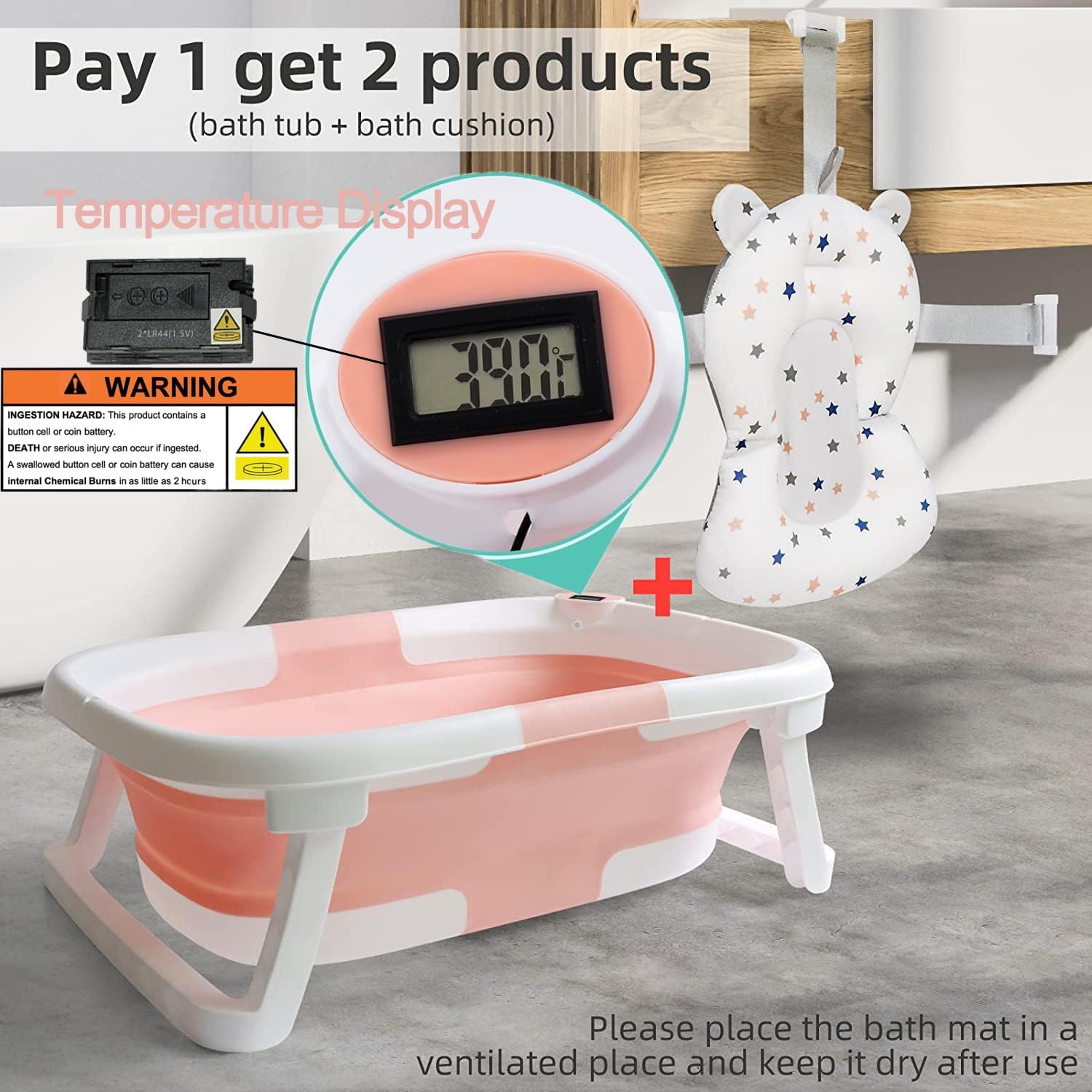 - (Compact Design): We absolutely know we always don’t have enough space in our lovely house, that’s the reason we designed this baby bath tub foldable and collapsible, our adorable bathtub not only can fold its legs but also fold it in half, that’s awesome