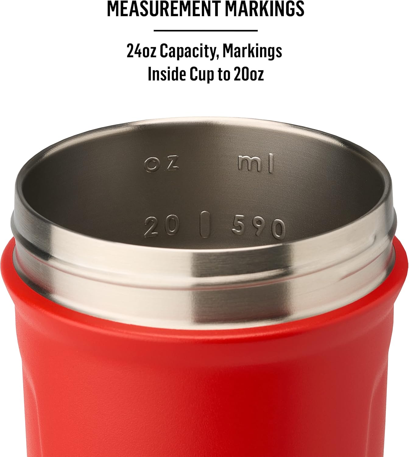 The BlenderBottle Strada Twist Cap Shaker Cup is a premium 24-ounce insulated stainless steel bottle designed to keep your drinks cold for hours while ensuring a smooth, spill-proof experience. Its sleek black design features a secure twist cap for easy opening and closing, and the included wire whisk blends protein powders, supplements, or smoothies effortlessly. Perfect for fitness enthusiasts and anyone on the go, this durable and dishwasher-safe bottle combines function and style in one compact package.