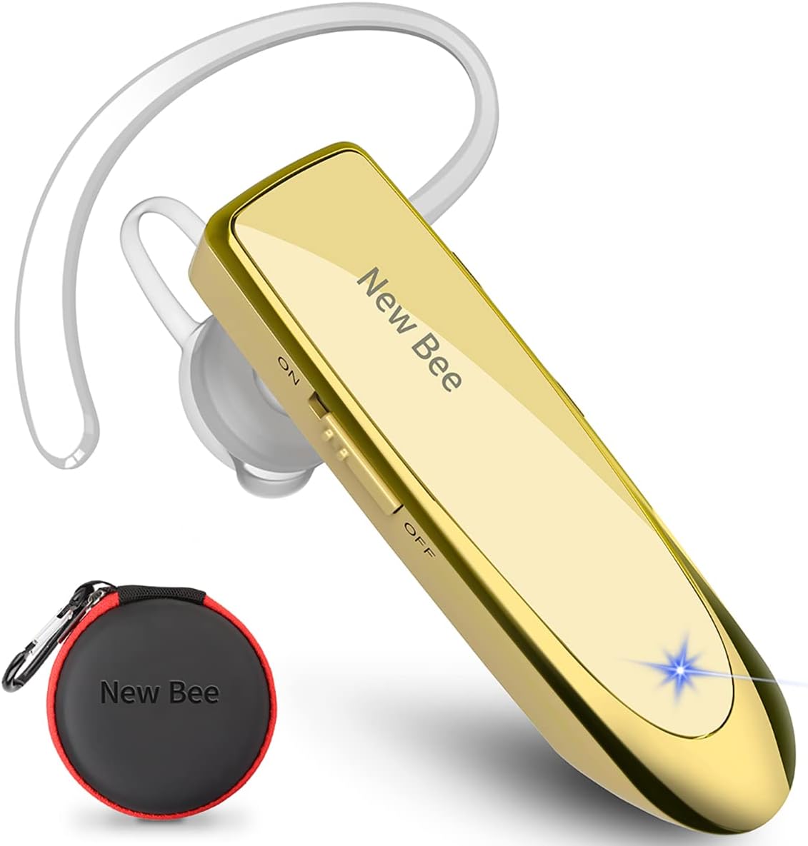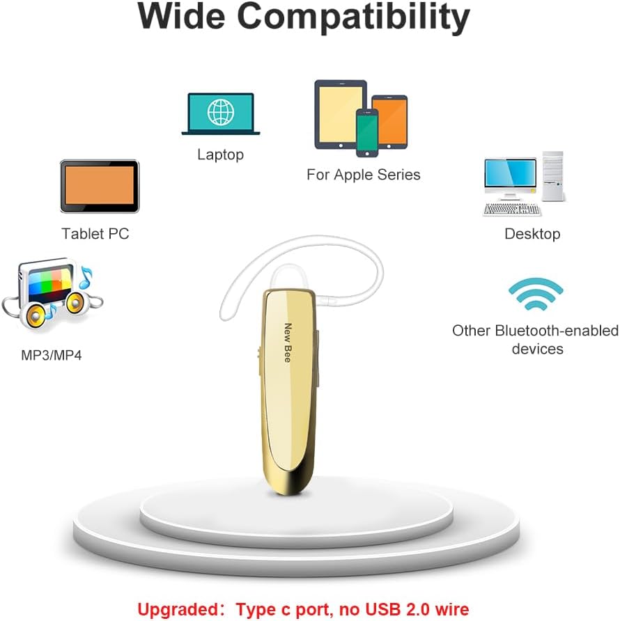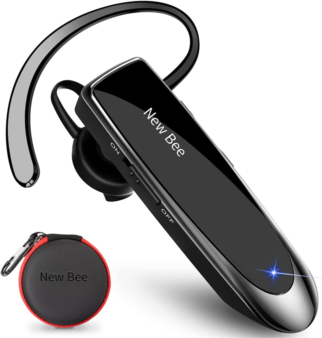 Bluetooth Headset New Bee 24Hrs V5.0 Bluetooth Earpiece Wireless Handsfree Driving Headset with Noise Canceling Mic Headset Case for iPhone Samsung Android Mobile Cell Phone Tablets Office
