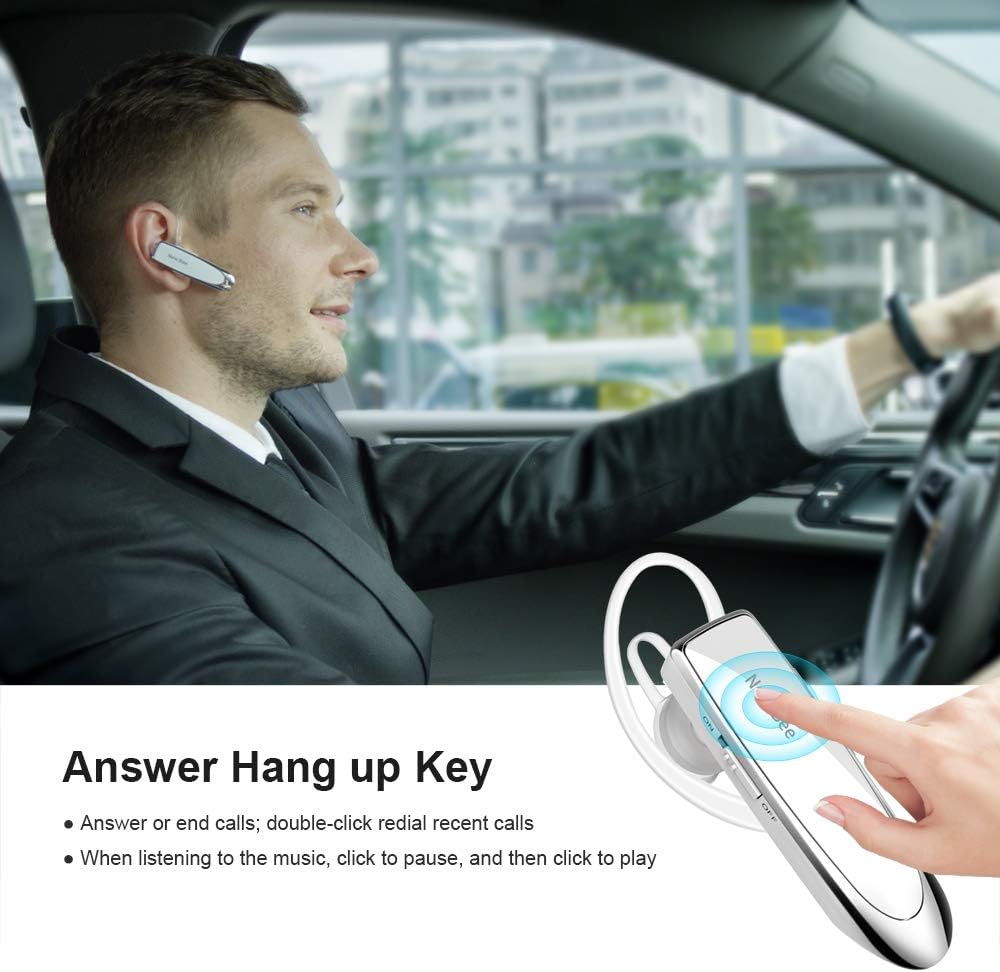 COMFORTABLE ERGONOMIC DEAIGN : Equipped with 360 degrees rotatable earhook and ensures that our bluetooth earpiece wireless fits both right and left ears. Only 0.4 oz in weight, soft earplug ensures all day long of comfortable wearing.