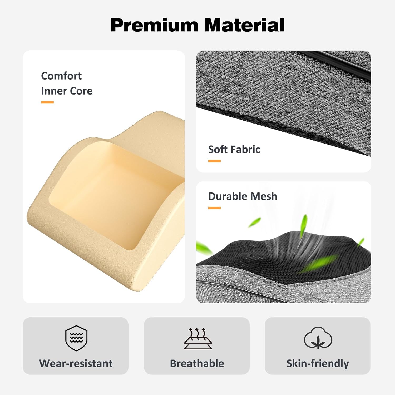 • 【Upgrade Neck and Back Massager】Larger size: 15*13 inches, 6 inches longer than ordinary massage pillows. Perfectly fits the neck and back curves to provide most comfortable massage experience. 2 heating positions with 2 heating levels. 3 adjustable intensities.