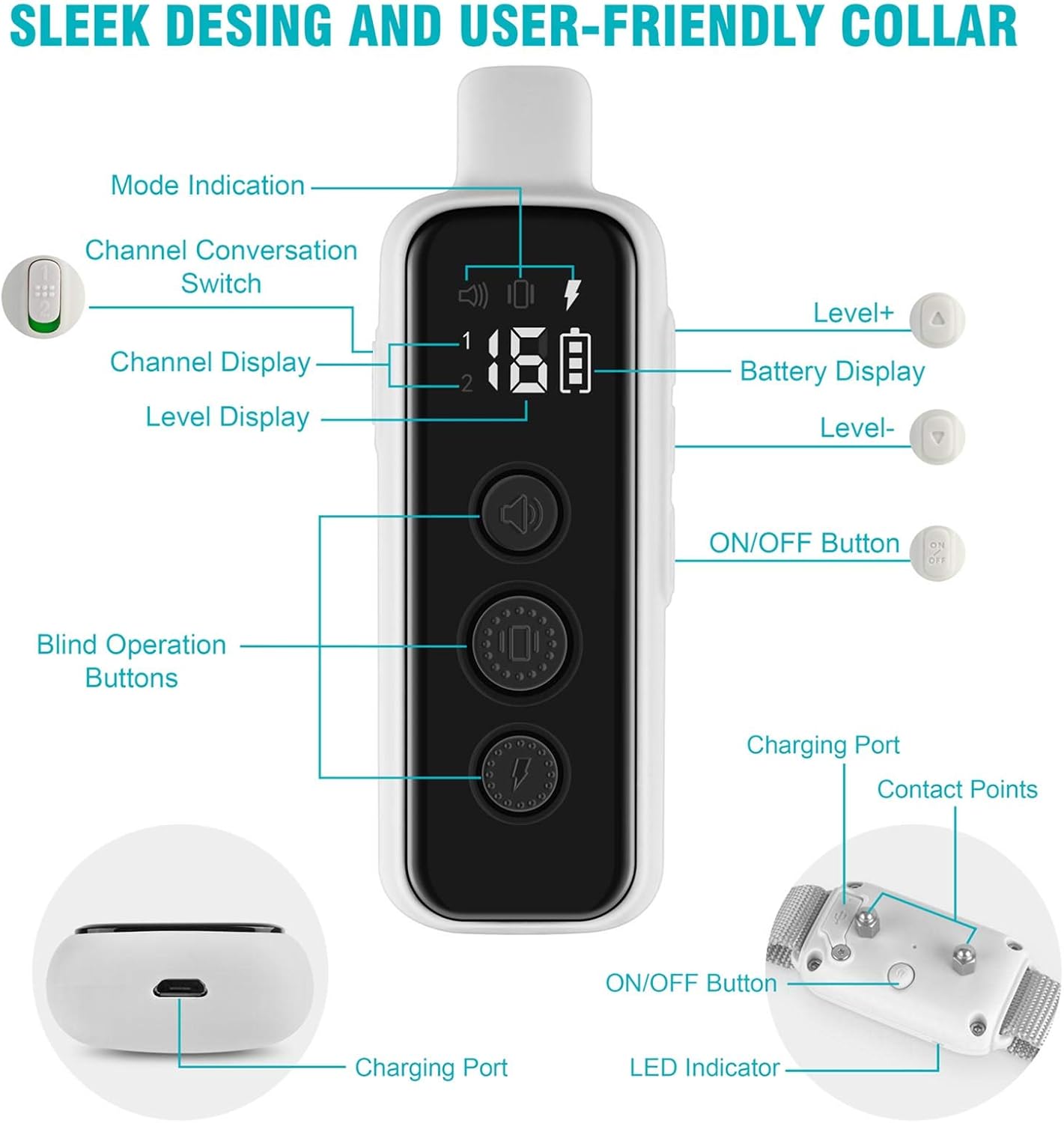 Dual-Channel with Up to Almost 1000FT Range: The Bousnic remote features a dual-channel to support training 2 dogs simultaneously. The remote training range of this e collar is almost 1000FT, which makes sure you can enjoy the training time with your dog in the backyard, the park, at the beach, or anywhere else.