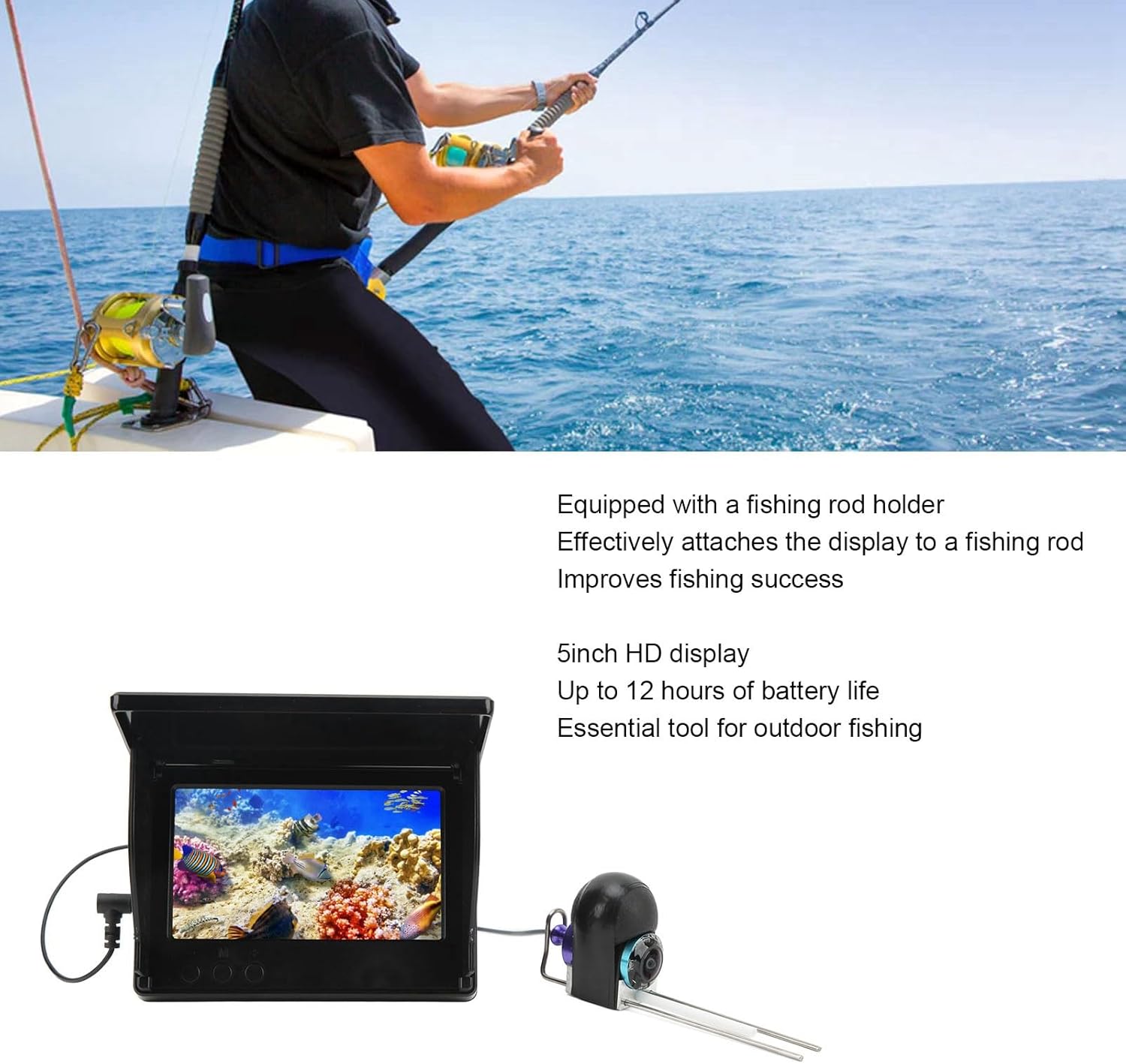 - 5 INCH HD DISPLAY: Underwater fishing camera features a 5 inch HD display with up to 12 hours of battery life. It is an essential tool for outdoor fishing.