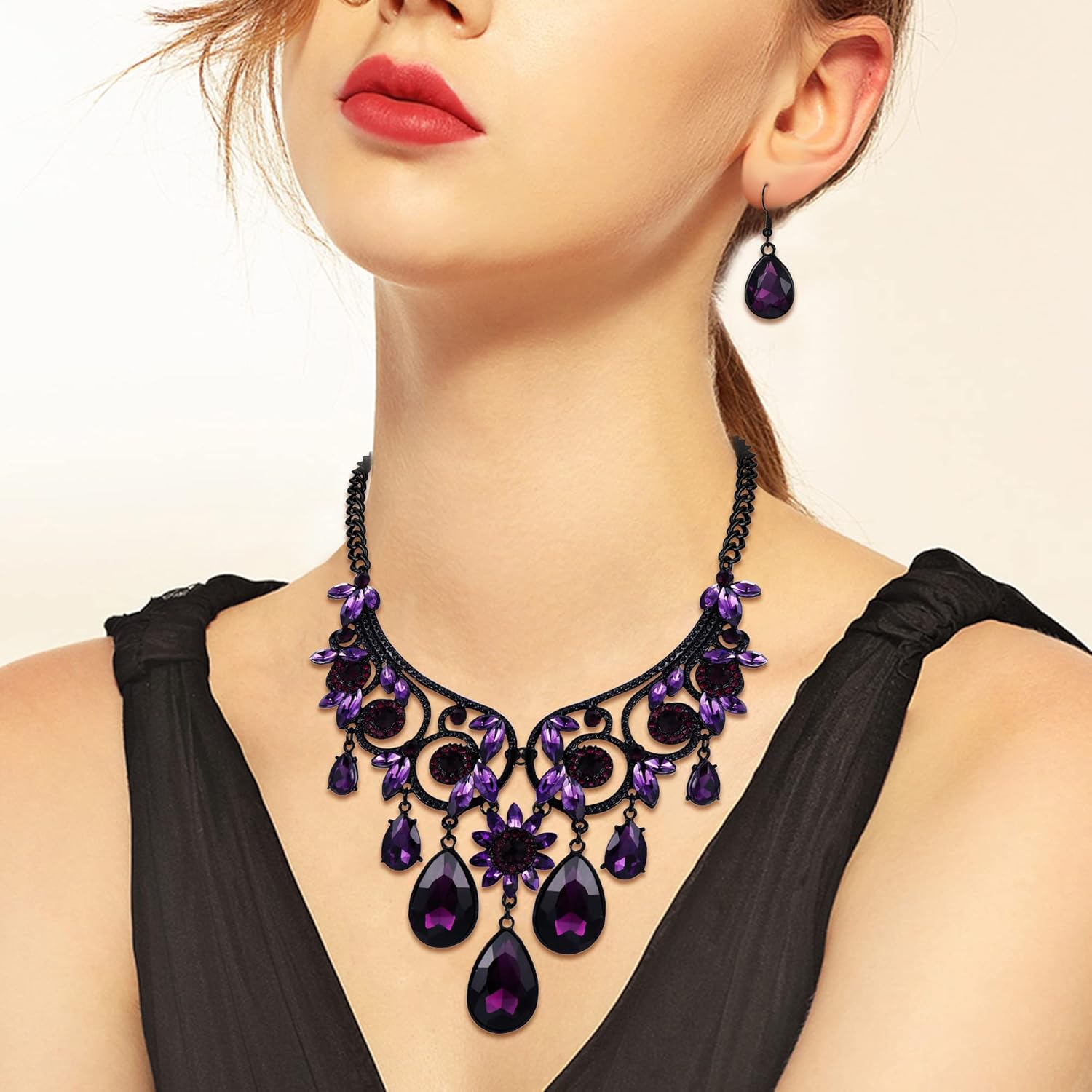BriLove Women's Tribal Ethnic Crystal Chunky Statement Necklace Dangle Earrings Set
