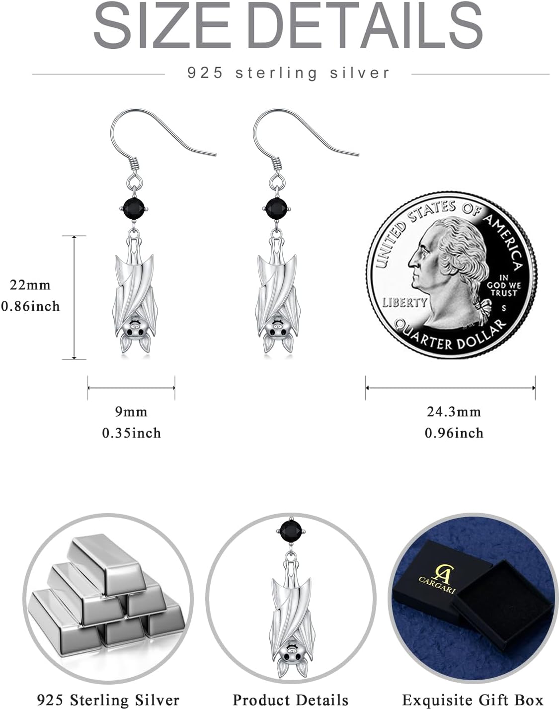 - [Material and Size] This bat earrings for women is made of 925 sterling silver. Especially for those with sensitive skin. bat pendant: 0.86*0.35 Inch (22*9 mm)