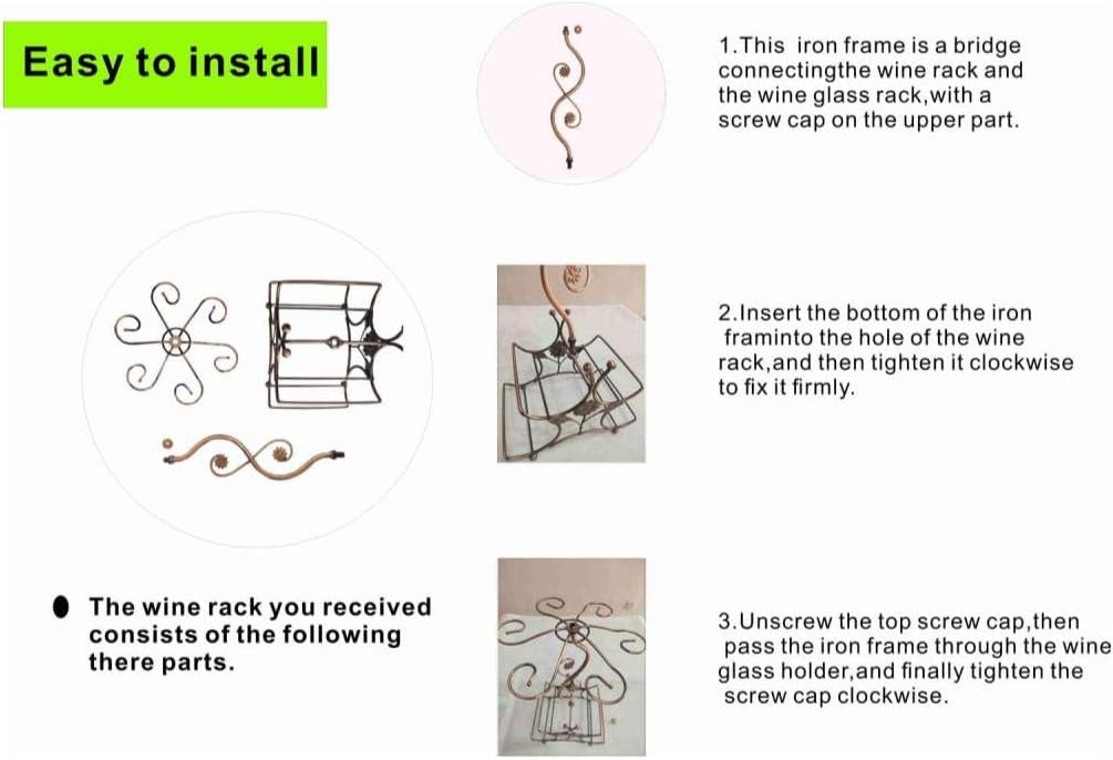 Need a wine rack for your kitchen counter? Maybe your dining room? bar rack?bar decor for home?kitchen bar?kitchen cabinet storage?kitchen counter decor?This wine rack fits in anywhere! This wine rack can fit seamlessly in with any décor. The design allows you to show off your wine bottles, turning them into a decoration and we can’t think of a better decoration than wine! Specifications: Color: Bronze; Weight: 2.53 lbs; Capacity: 6 Wine Bottles (750 ml each) and 4 Wine Glasses ; Dimensions: 10.24''(L) x 10.24''(W) x18.9''(H); Assembly required.No other auxiliary tools are needed for installation, just tighten Features: [Smooth surface] It’s super smooth to the touch which means no scratches on your wine bottles. It’s more expensive to produce than traditional paint but we wouldn’t have it any other way. [Proven welding technology] Our wine racks have mature welding technology, which makes the wine racks more durable.This product is handmade and there are traces of handmade parts, but it is not a quality problem,We hope you can understand and accept it. After Service : If you have any issues related to our product, please contact us immediately so we can address your concerns.