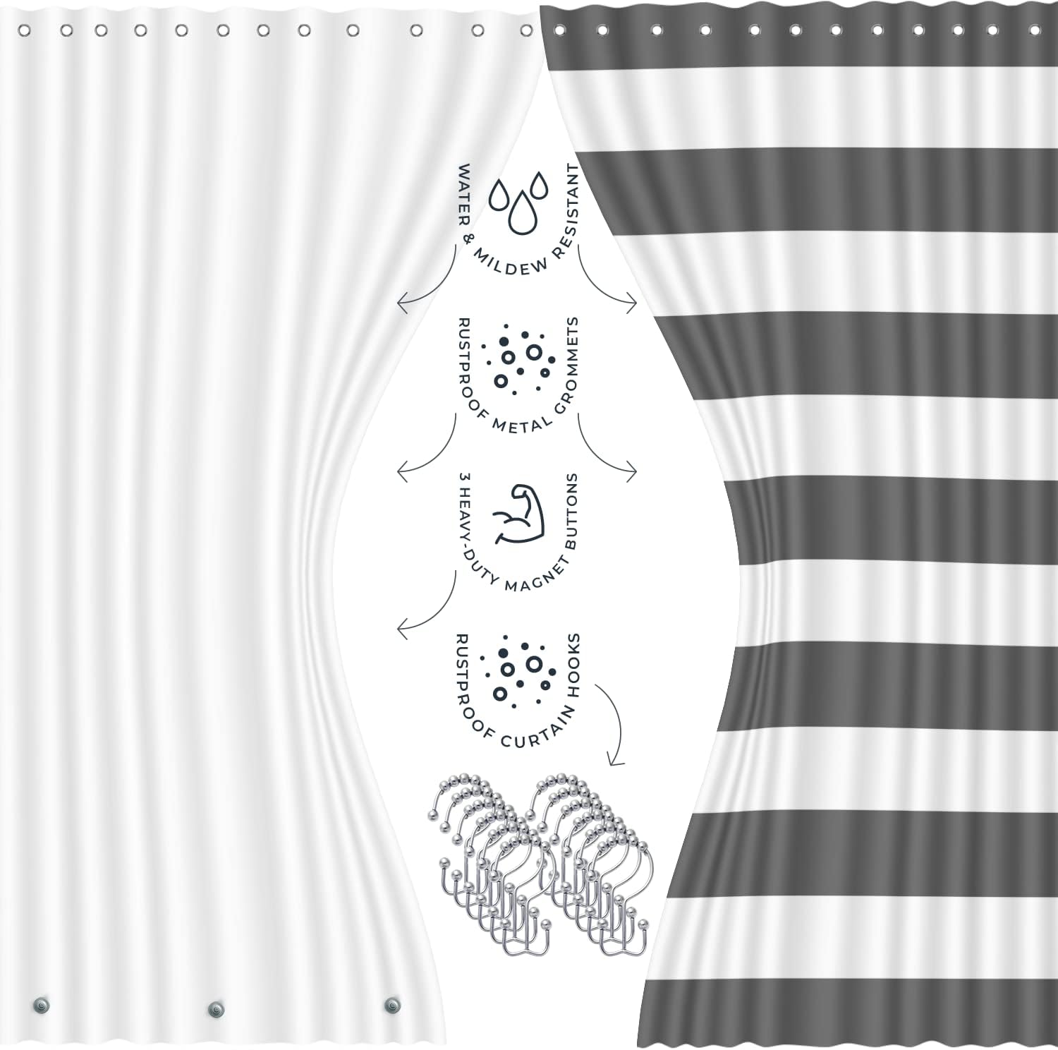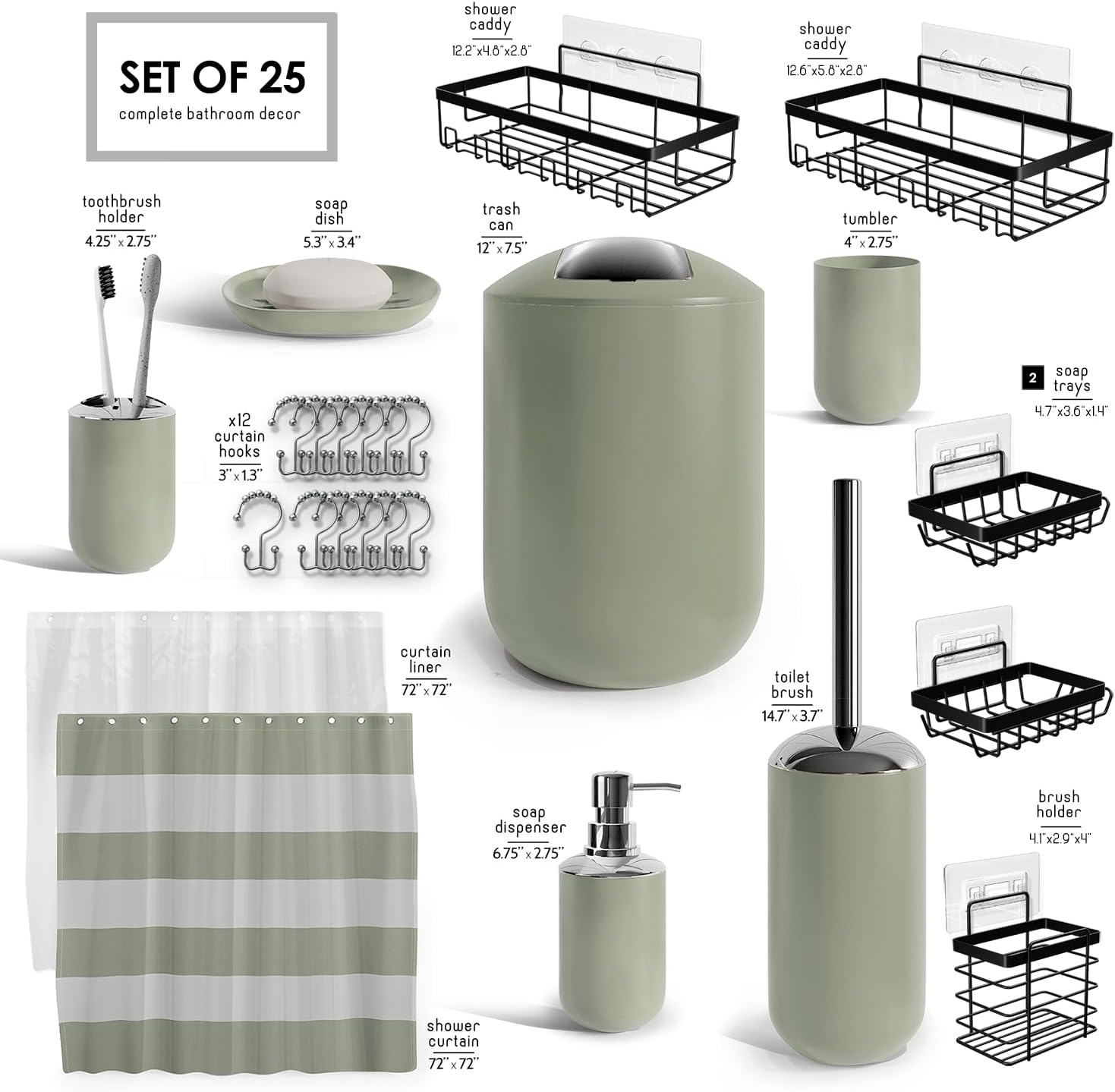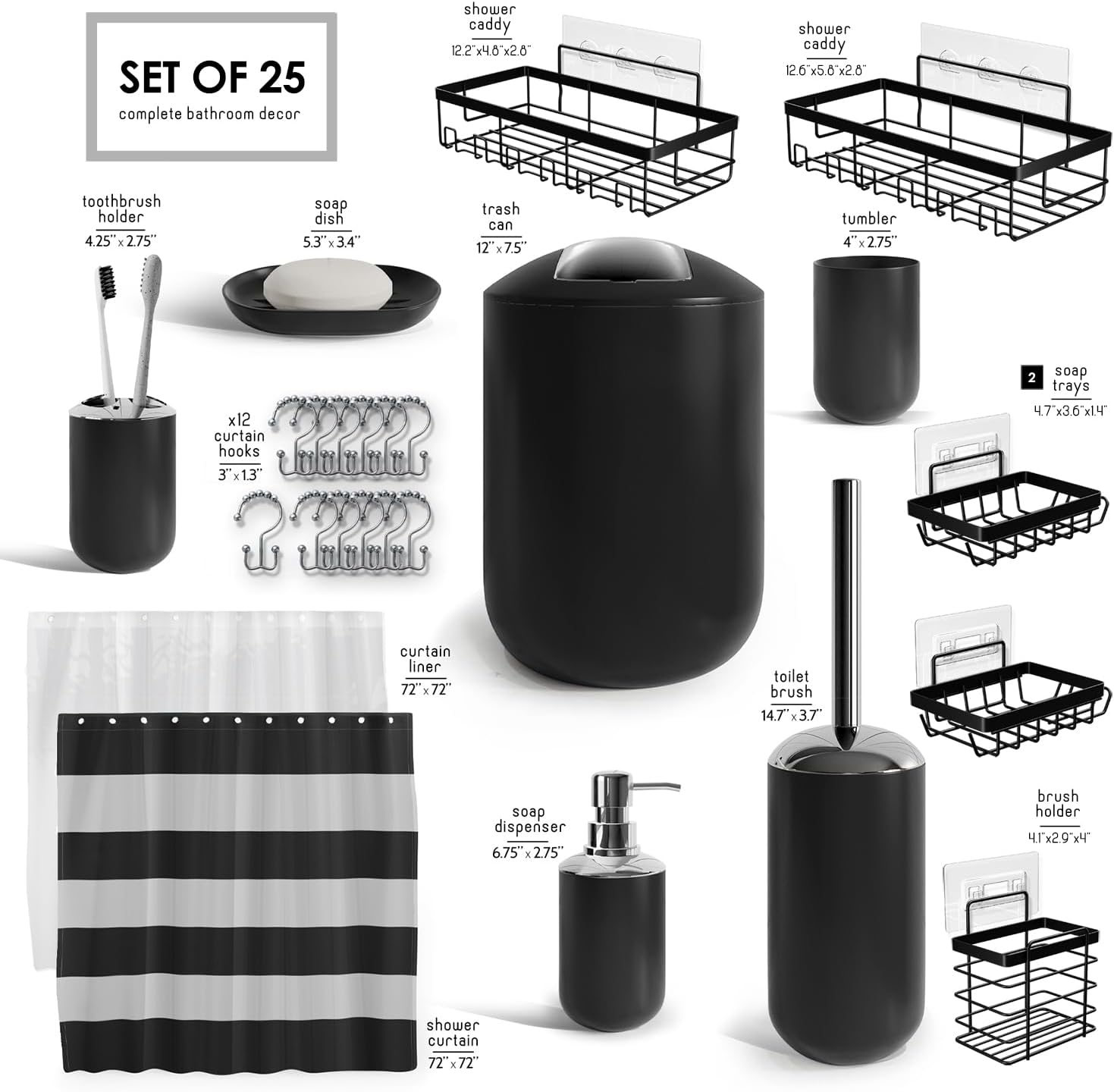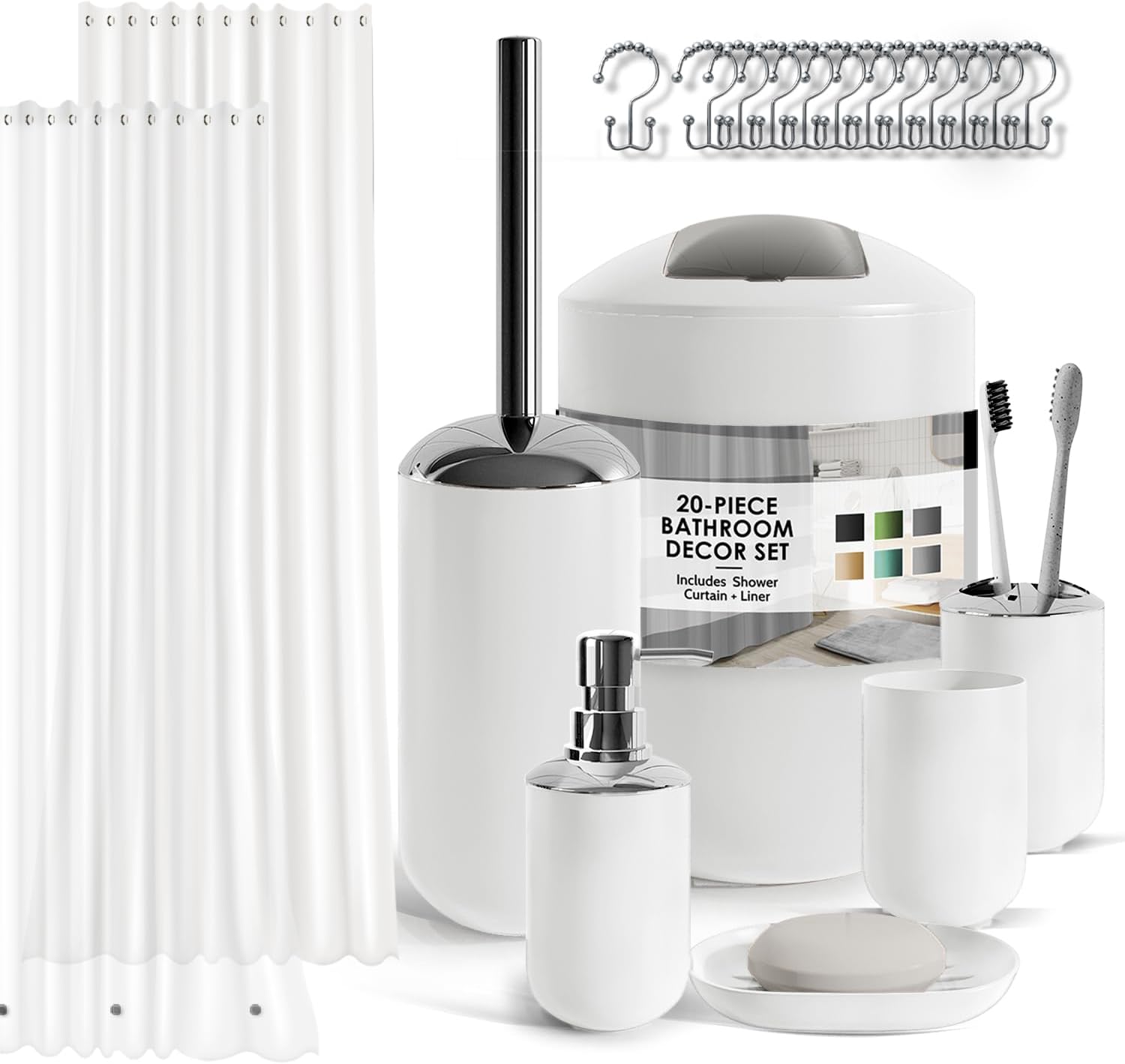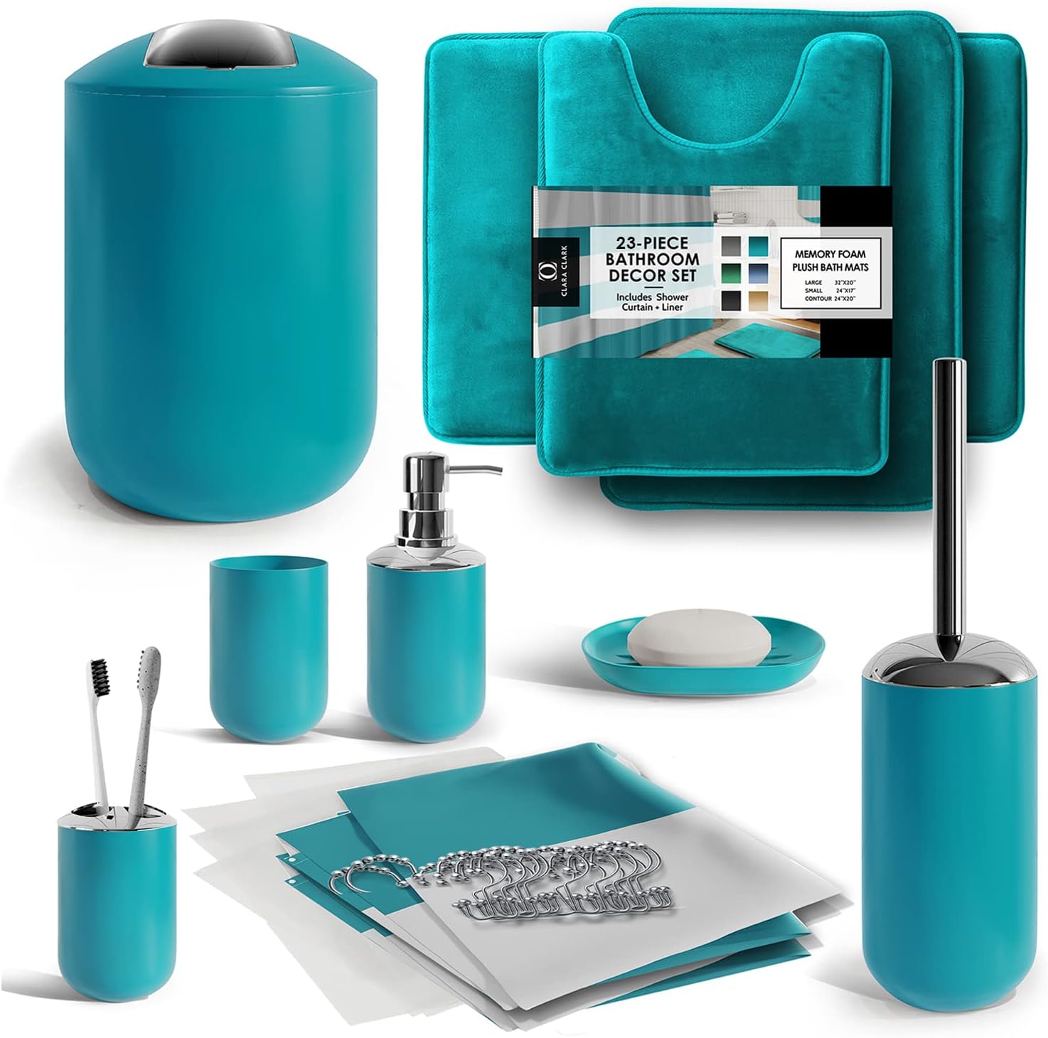 Clara Clark Bathroom Set - Gray Bathroom Accessories Set, Bathroom Sets with Shower Curtain and Rugs, 23PC Shower Curtain Set with Liner, Soap Dispenser, Soap Dish, Toilet Brush Holder, and Trash CanPL17-B09M16ZPL1