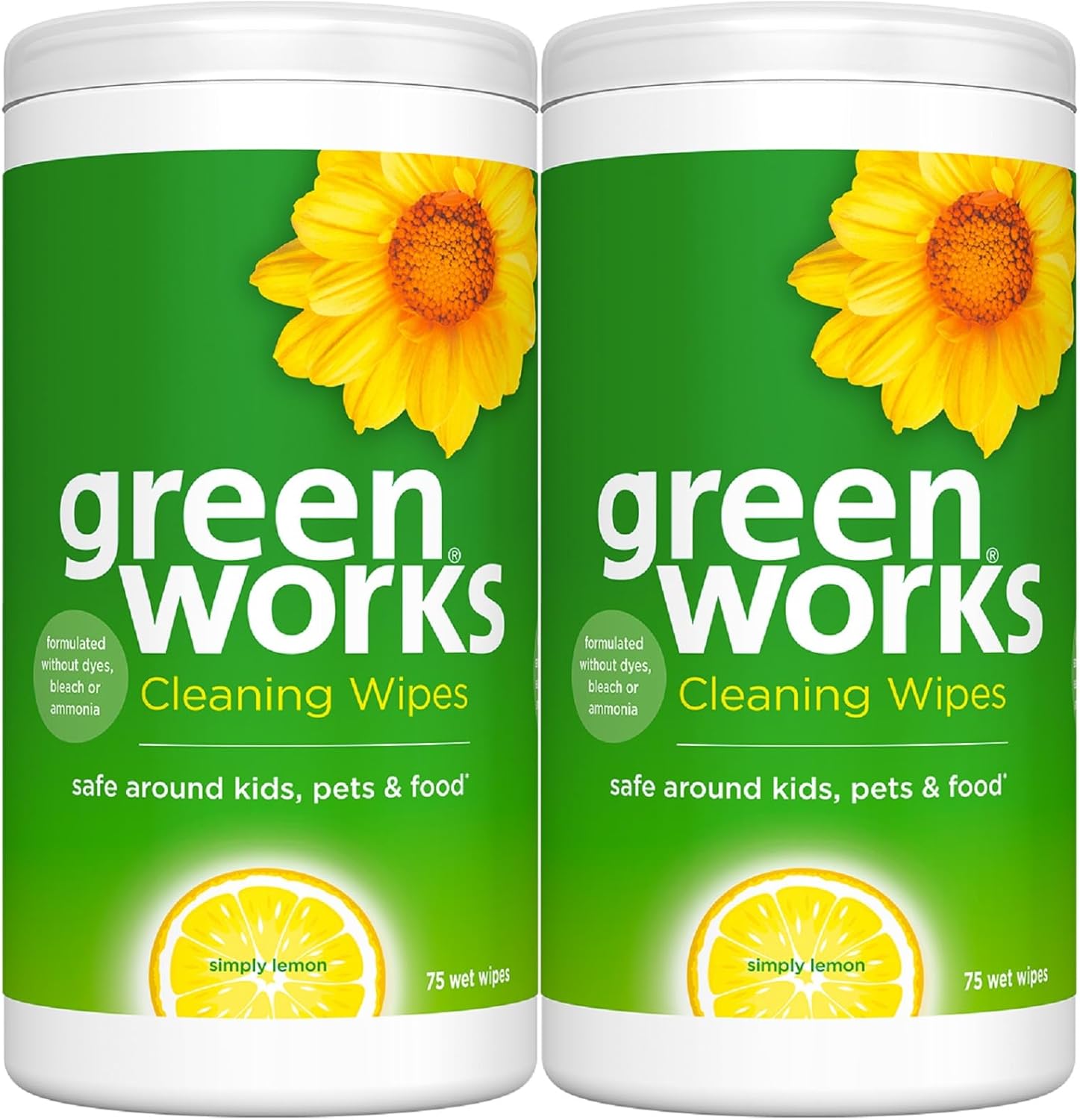 Clorox Green Works Cleaning Wipes, Simply Lemon, 75 Count, Multi-Pack of 2 Canisters, Safe for use around kids, pets, and food*