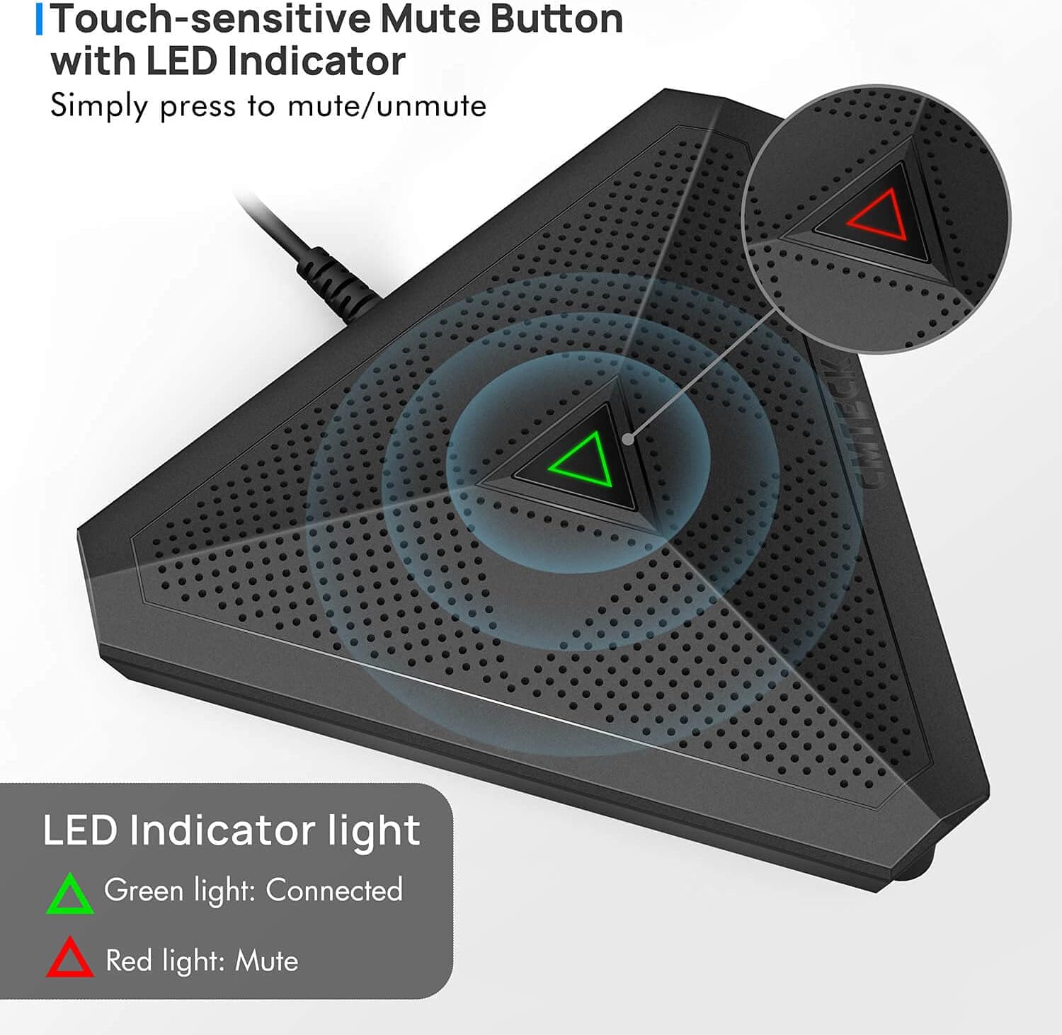 CMTECK USB Desktop Computer CM001 Microphone, Mute Button with LED Indicator, Omnidirectional Condenser Boundary Conference Mic for Recording, Streaming, Gaming, Skype (Windows/Mac), No Speaker