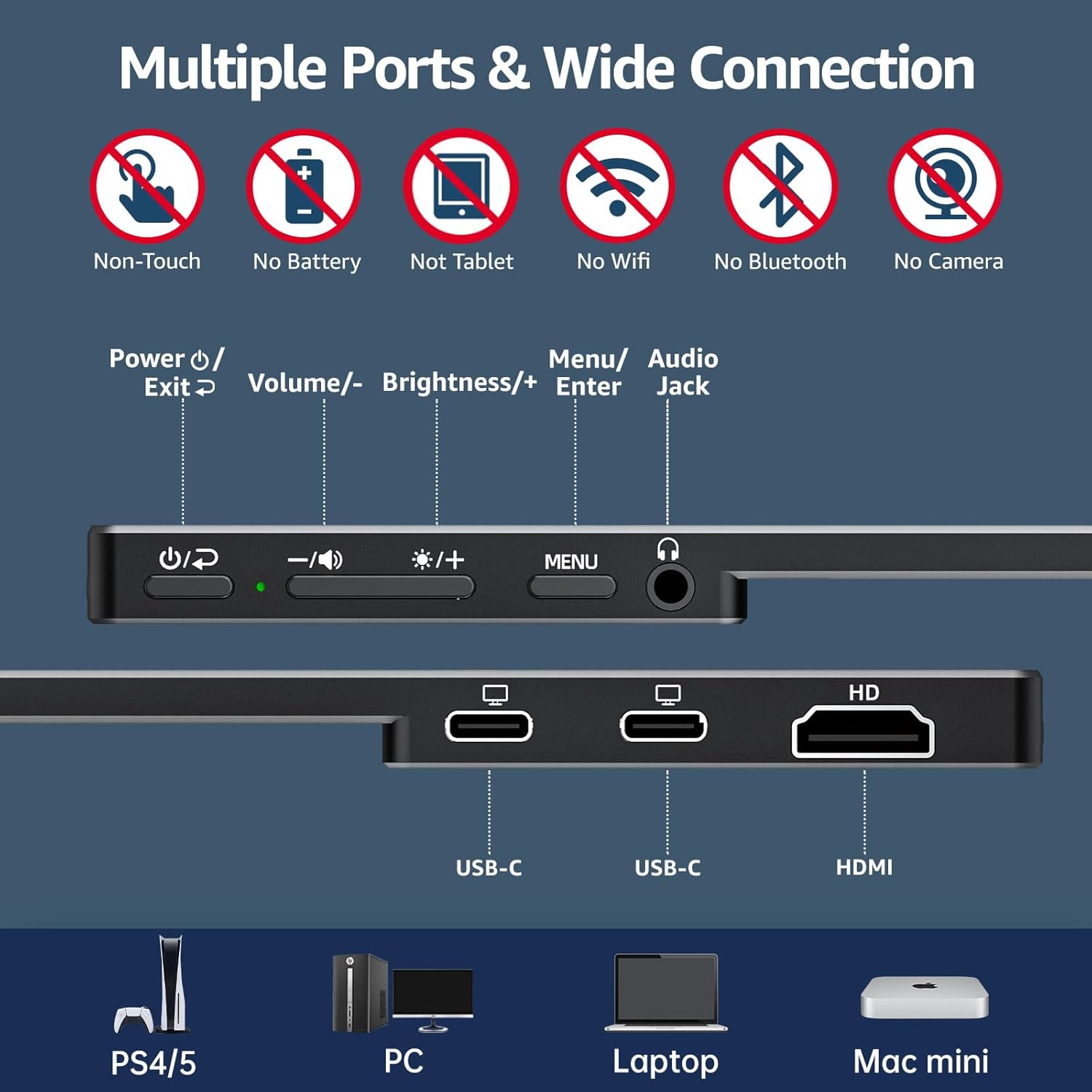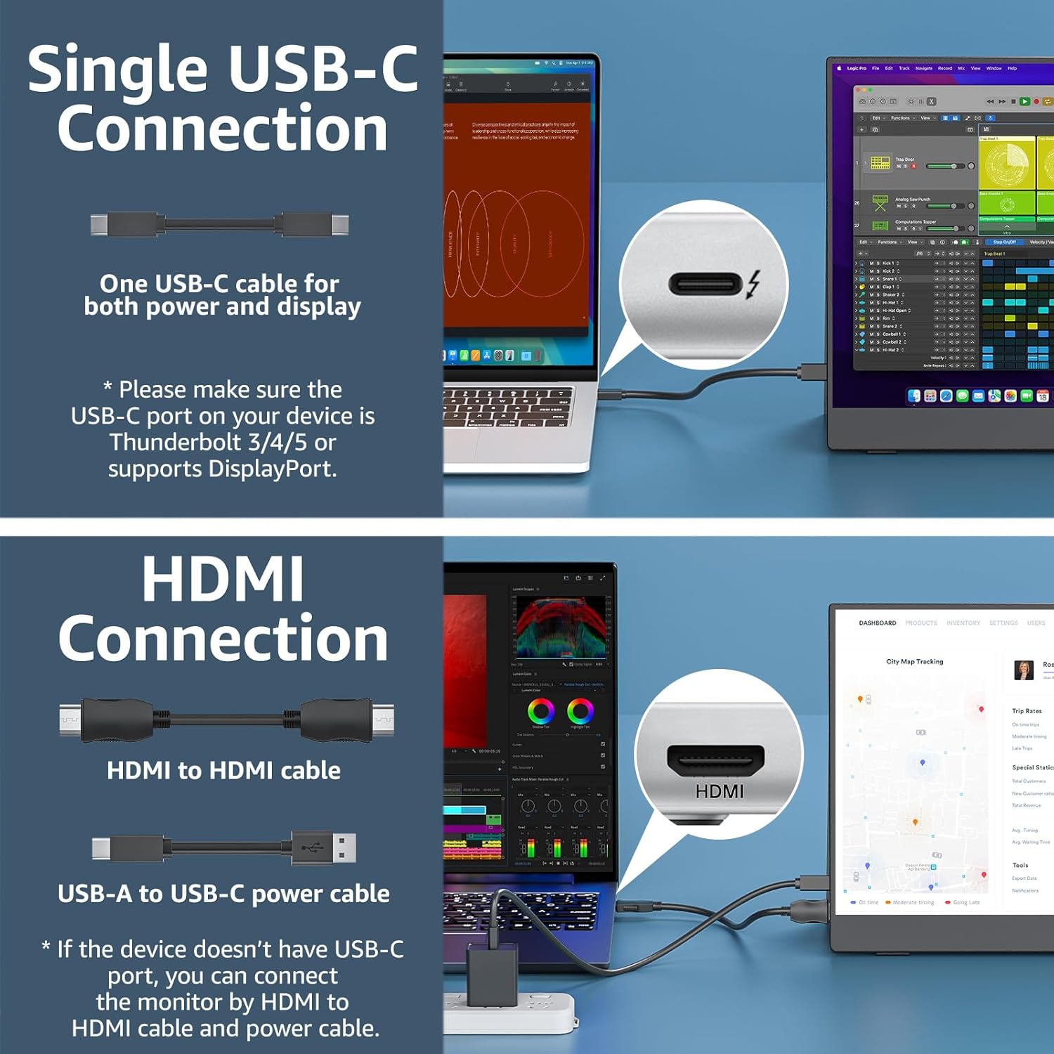 - Plug-and-Play Connectivity: Cocopar external monitor for laptop featuring two USB-C ports and one HDMI port, this monitor easily connects to Macbook, Surface, laptops, PCs, Xbox, Switch, PS4/5 and more. Compatible with macOS, Windows, ChromeOS, and supports Thunderbolt 3/4 devices with just one original USB-C cable. Enjoy seamless connectivity for a hassle-free experience
