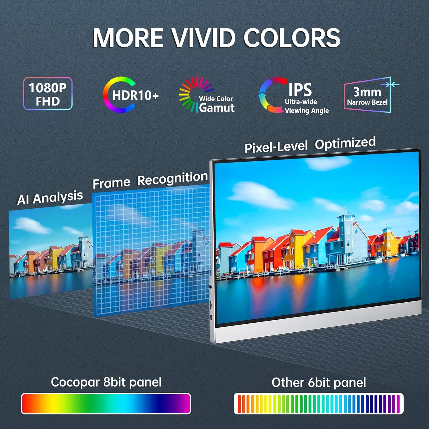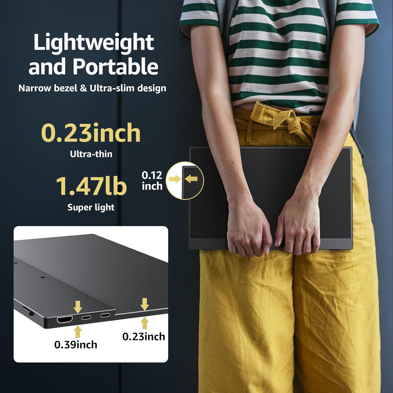 - Ultra-Portable 18.5-inch Display: Cocopar portable travel monitor is with an 18.5-inch 1080p FHD IPS screen, this display enhances your visual experience. Weighing just 2.2 pounds and measuring 0.17 inches at the slimmest point, it easily fits in your bag for travel, work, or on-the-go use. The borderless, slim design ensures effortless portability, offering a second screen wherever you need it