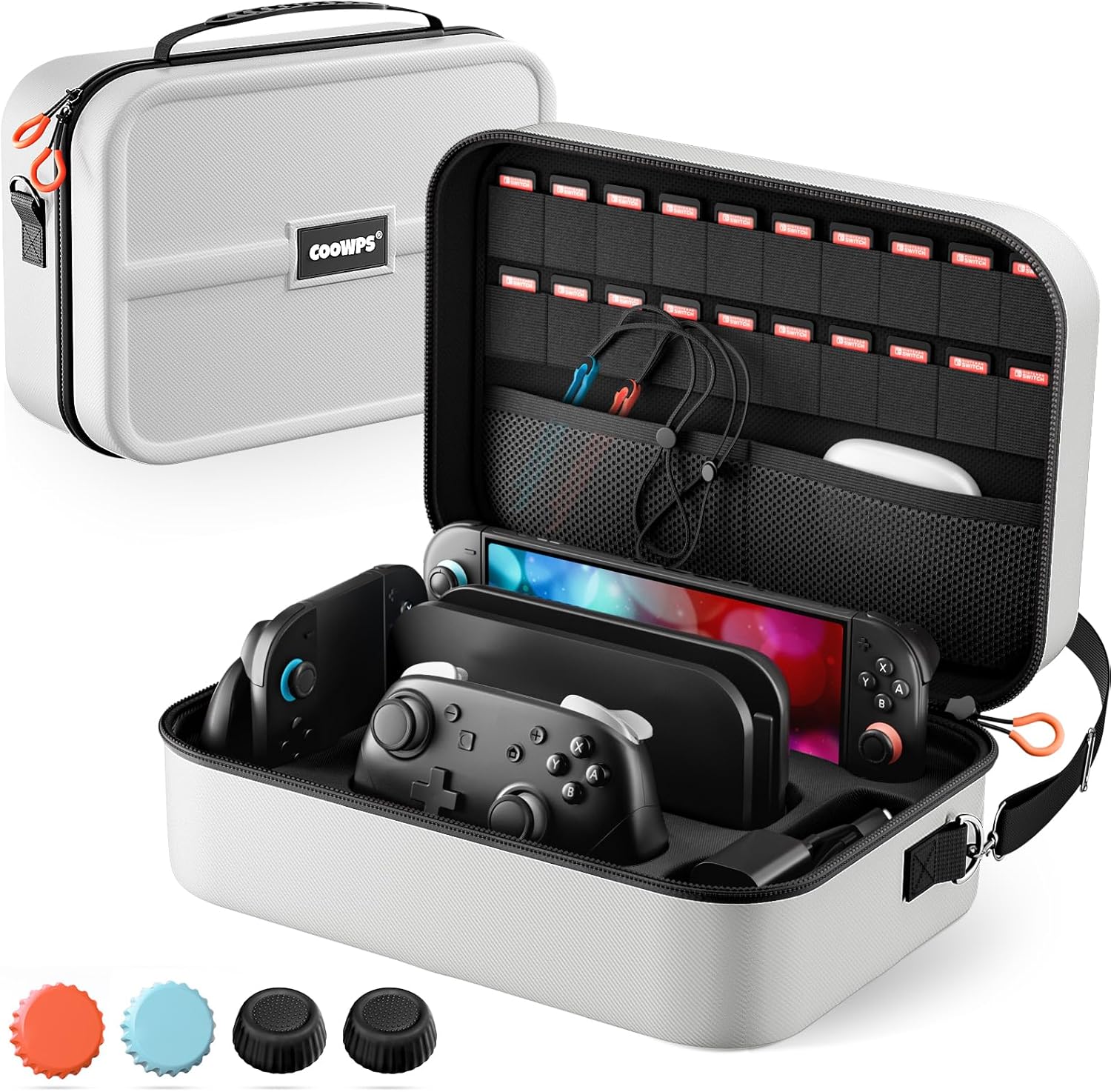 COOWPS Case for Nintendo Switch 2, Hard Shell Full Protection All-in-One Travel Case with 4pcs Thumb Grip Caps & 20 Game Card, Slots Soft Lining Carrying Case for Switch 2 Accessories Pro Controllers