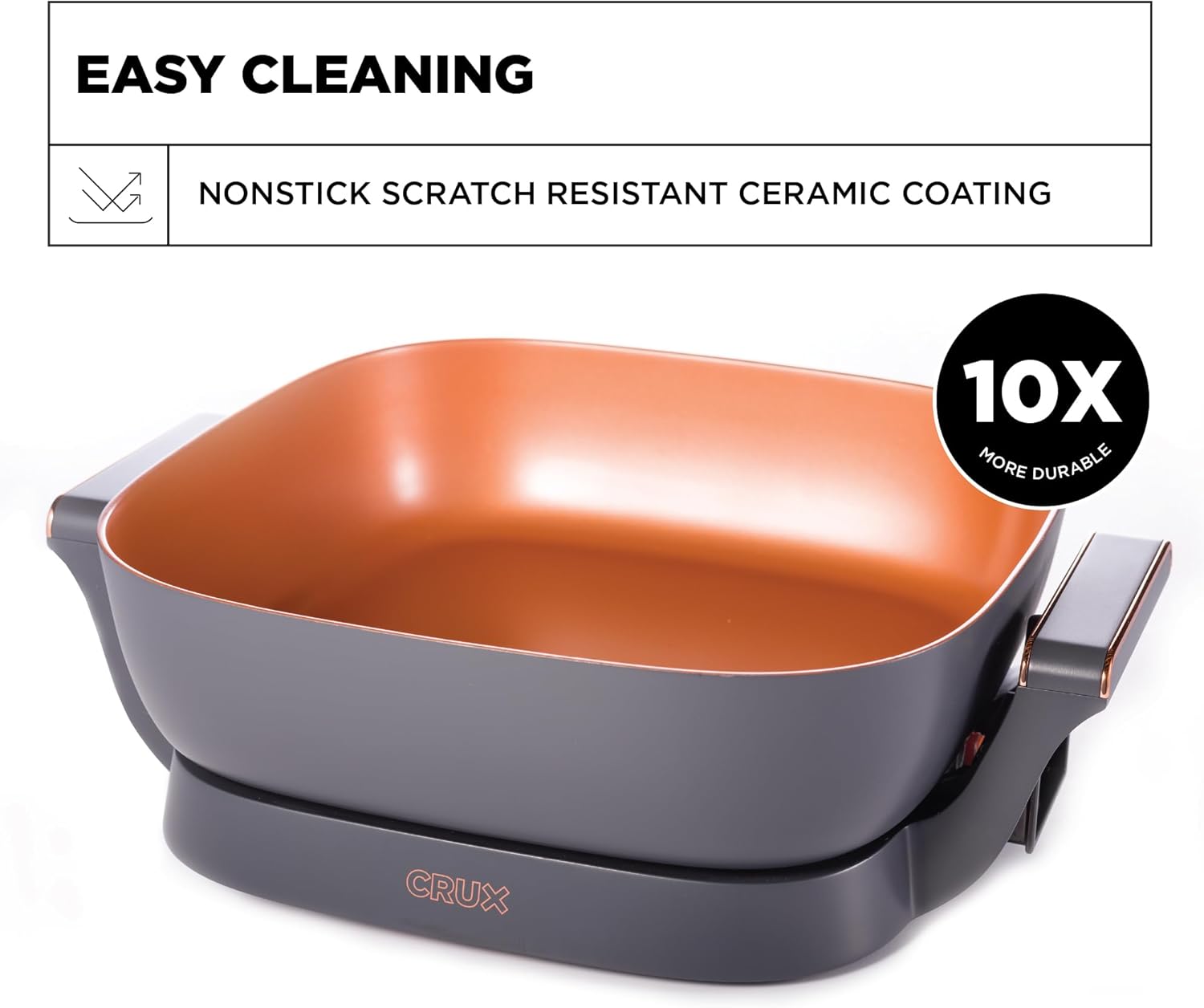 CRUX Extra Deep Nonstick Scratch Resistant Electric Skillet with Removeable Temperature Probe, 12" x 12"