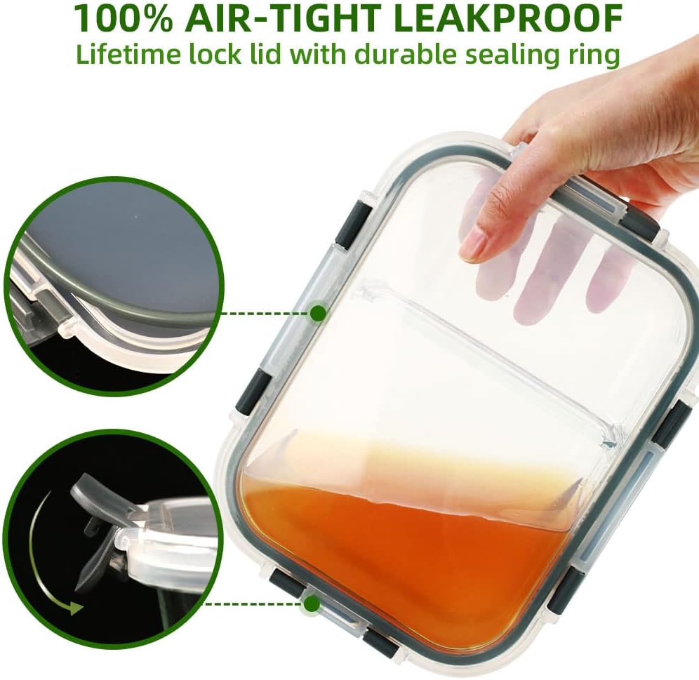 • 1OO% AIR-TIGHT & LEAKPROOF - Awesome lunch bag with airtight sealed leakproof glass food storage containers. Lifetime lasting locking lids with removable high quality silicone seals without leaking, which lasts much longer than normal plastic meal prep container