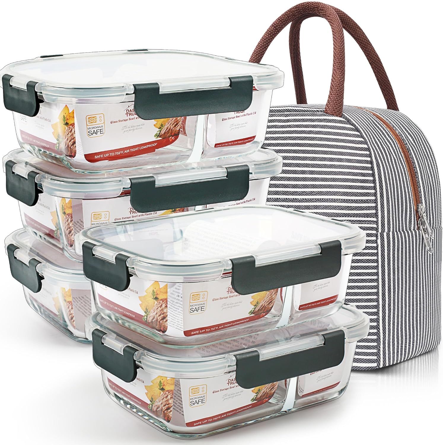 DAS TRUST 5 Pack 36oz Food Storage Containers 2 Compartments Glass Meal Prep Containers with Lid Lunch Containers for Adult Food Prep with DividersPL17-B0BVKPDLKF