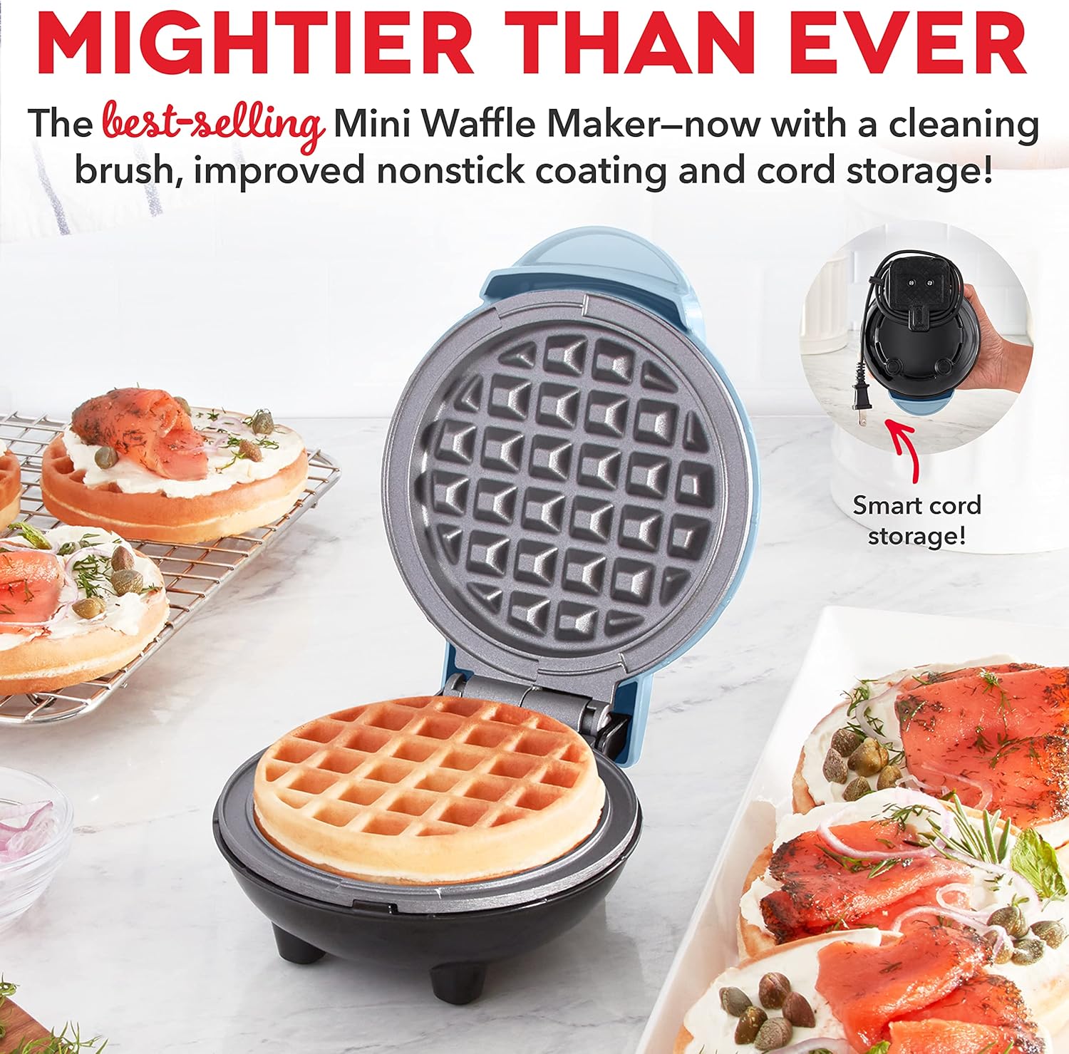 DASH Deluxe Mini Maker for Individual Waffles, Hash Browns, Keto Chaffles with Included Brush and Cord Wrap, and Easy to Clean Non-Stick Surfaces, 4 Inch, Dream Blue