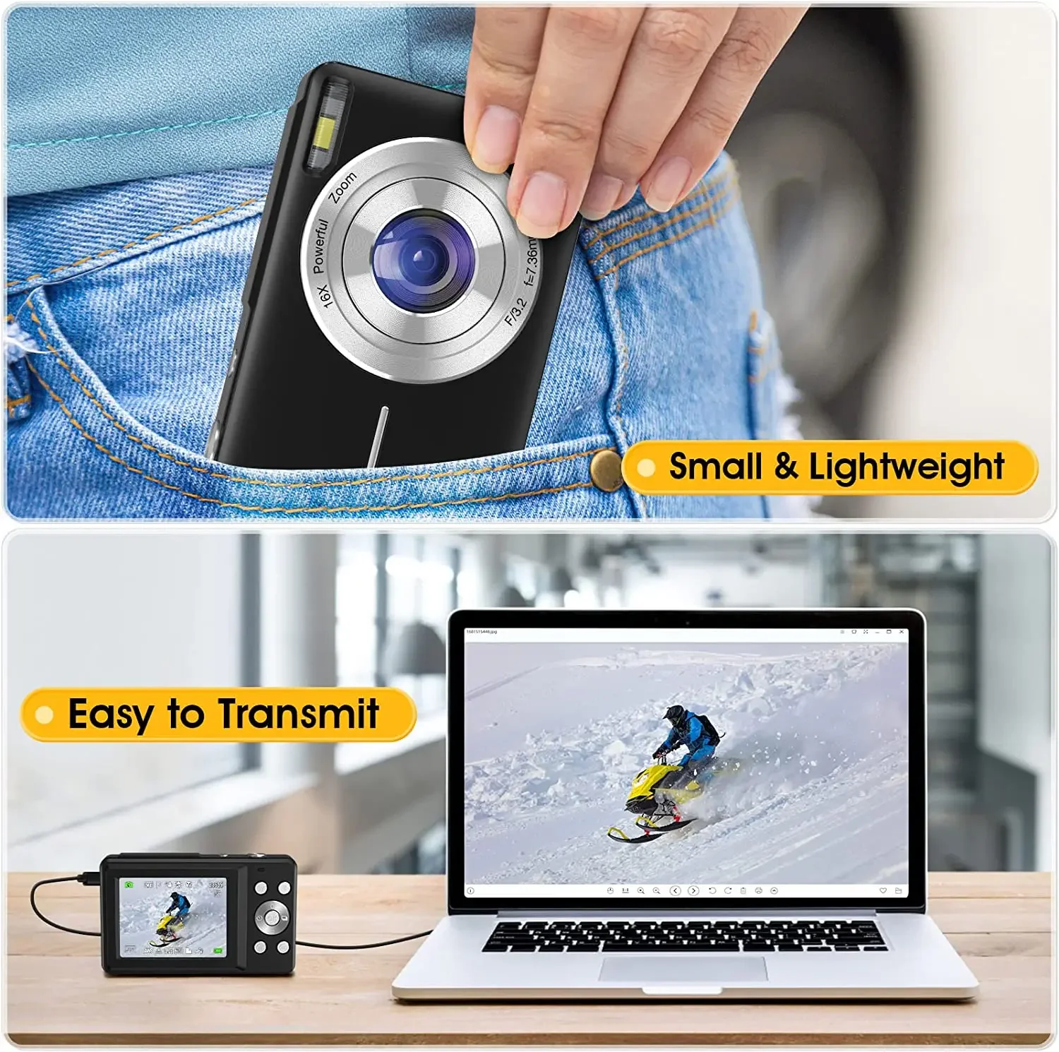 Purilite Select 44MP 1080P Digital Kids Camera with 16x Zoom for Travel & Vlogging