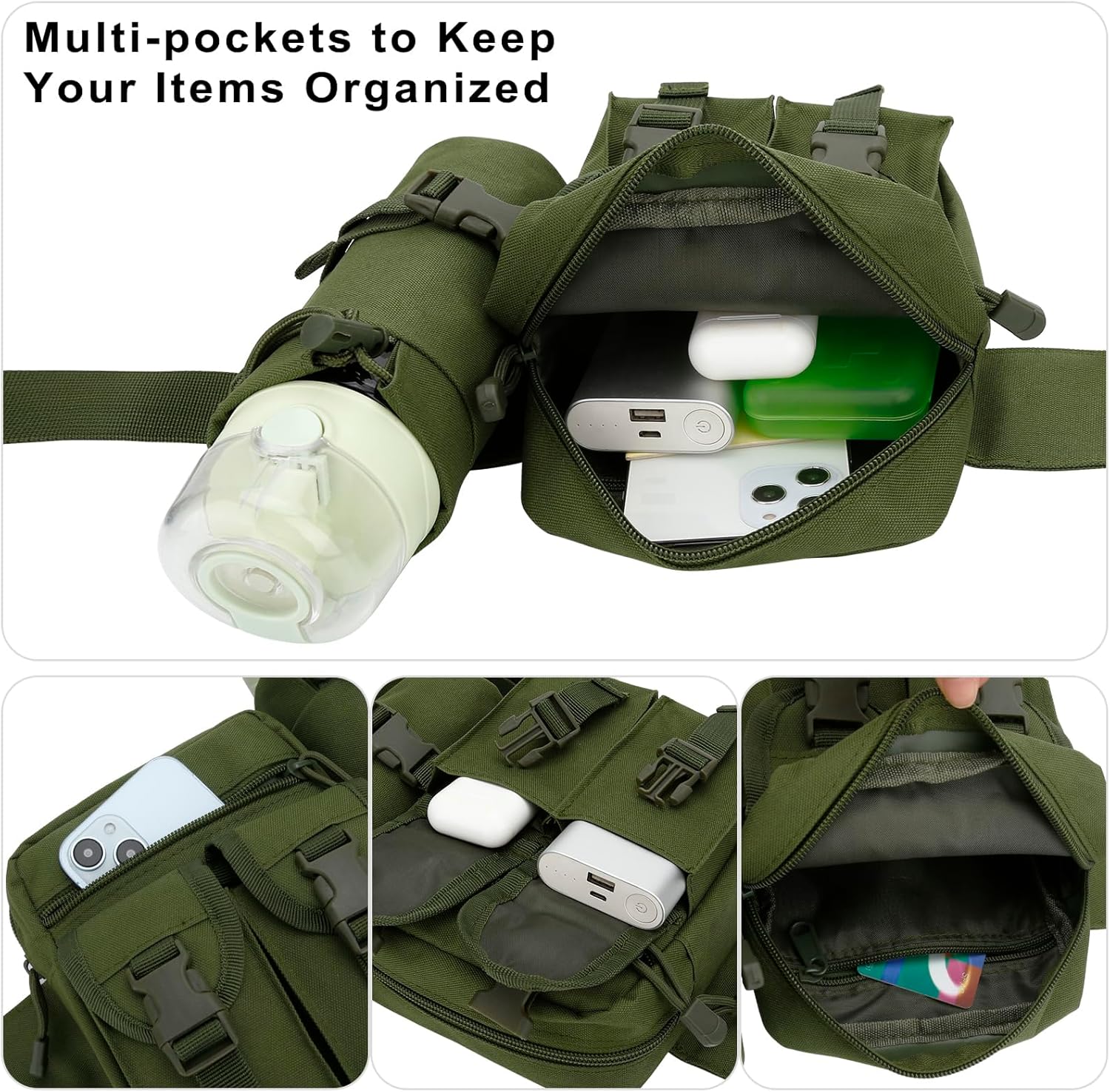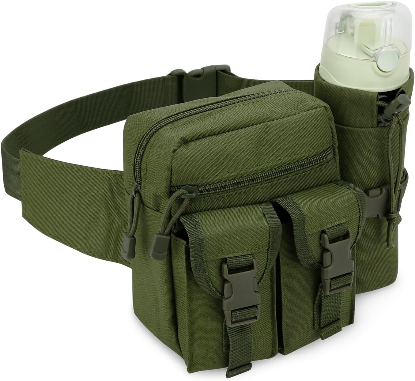 DOB SECHS Hiking Waist Bag with Detachable Water Bottle Holder and Adjustable Waist Belt, Oxford Fanny Pack for Men Women Causal Belt Bag for Travel Outdoor Fishing Running Hiking Hunting, Green