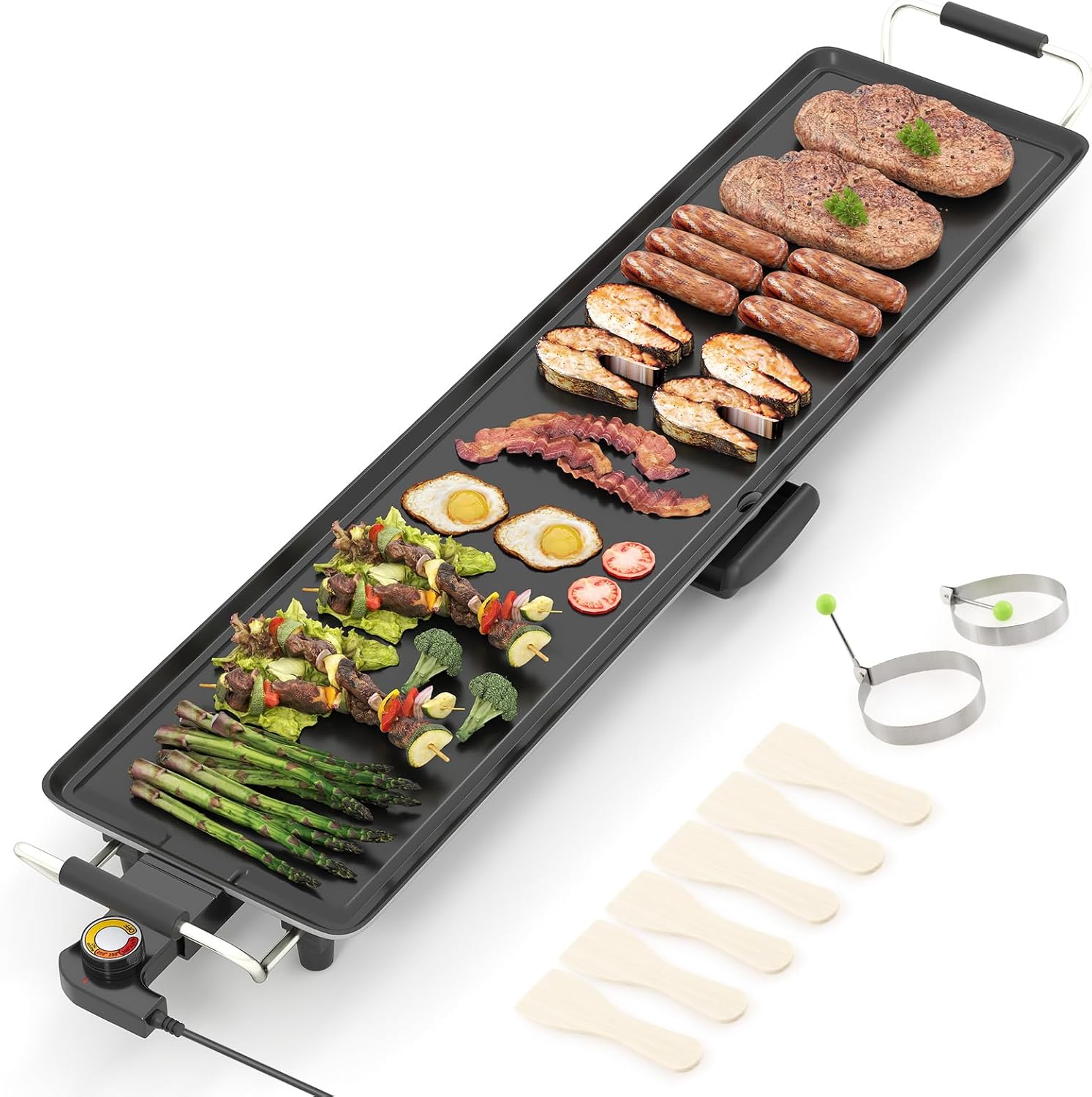 DORTALA 39.5" Electric Griddle, Portable Teppanyaki Grill for 10-12 Person with 2 Cooking Surface, Thermostat Control, Insulated Handles & Drip Tray, Indoor Outdoor BBQ Grill for Party, Camping & RVPL17-B0F93SJ8H4