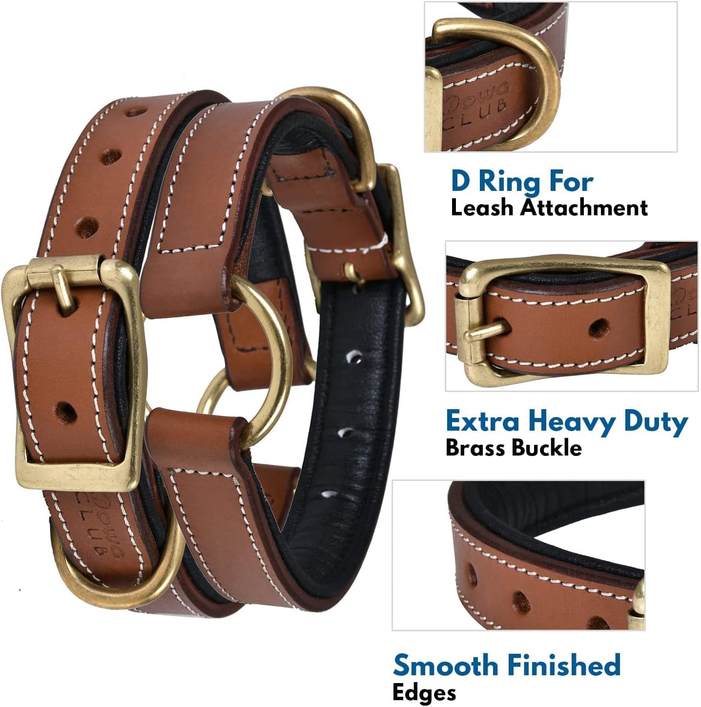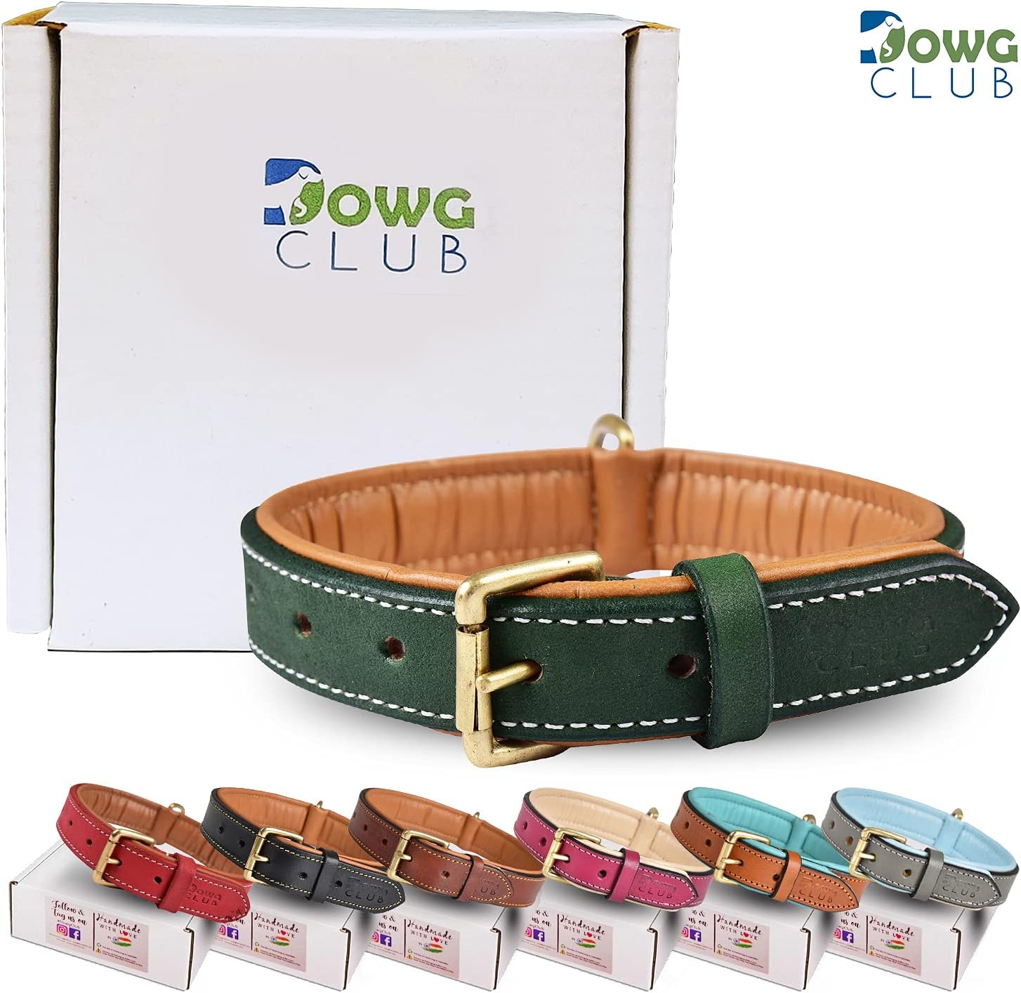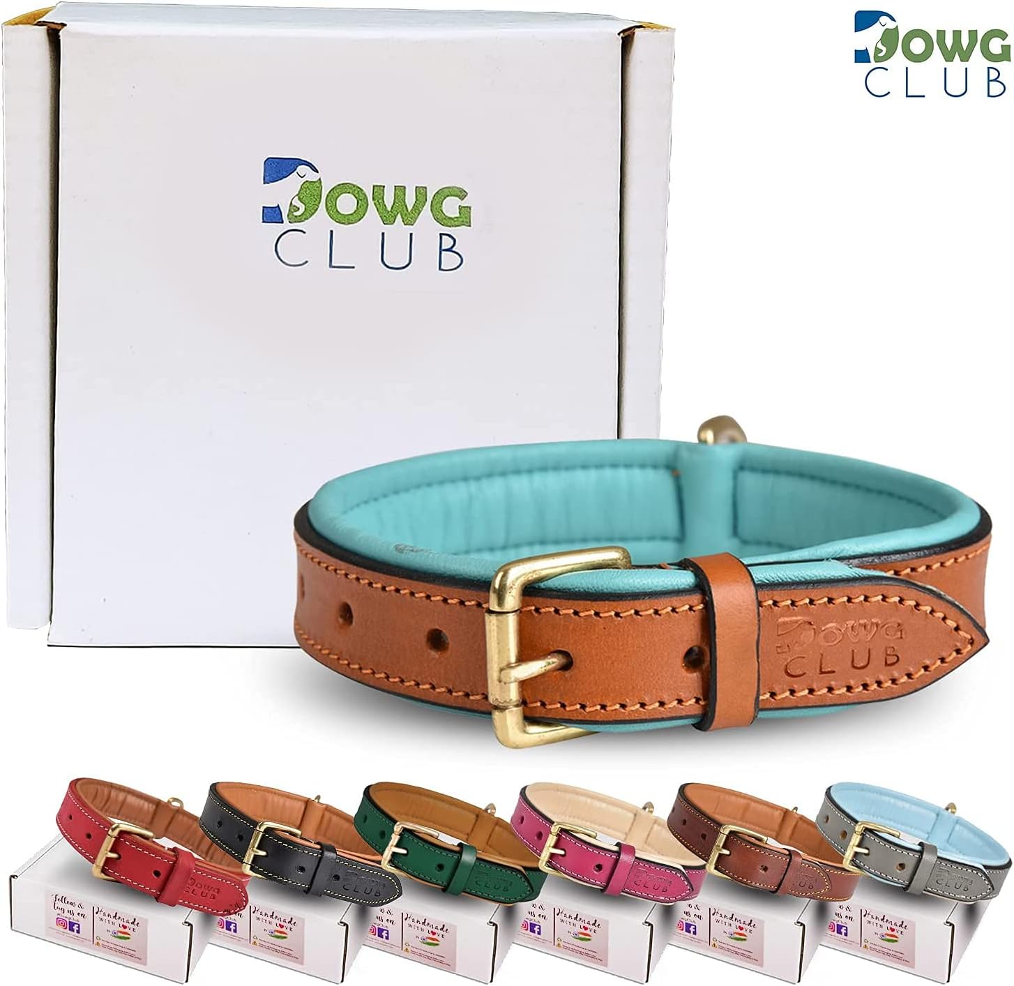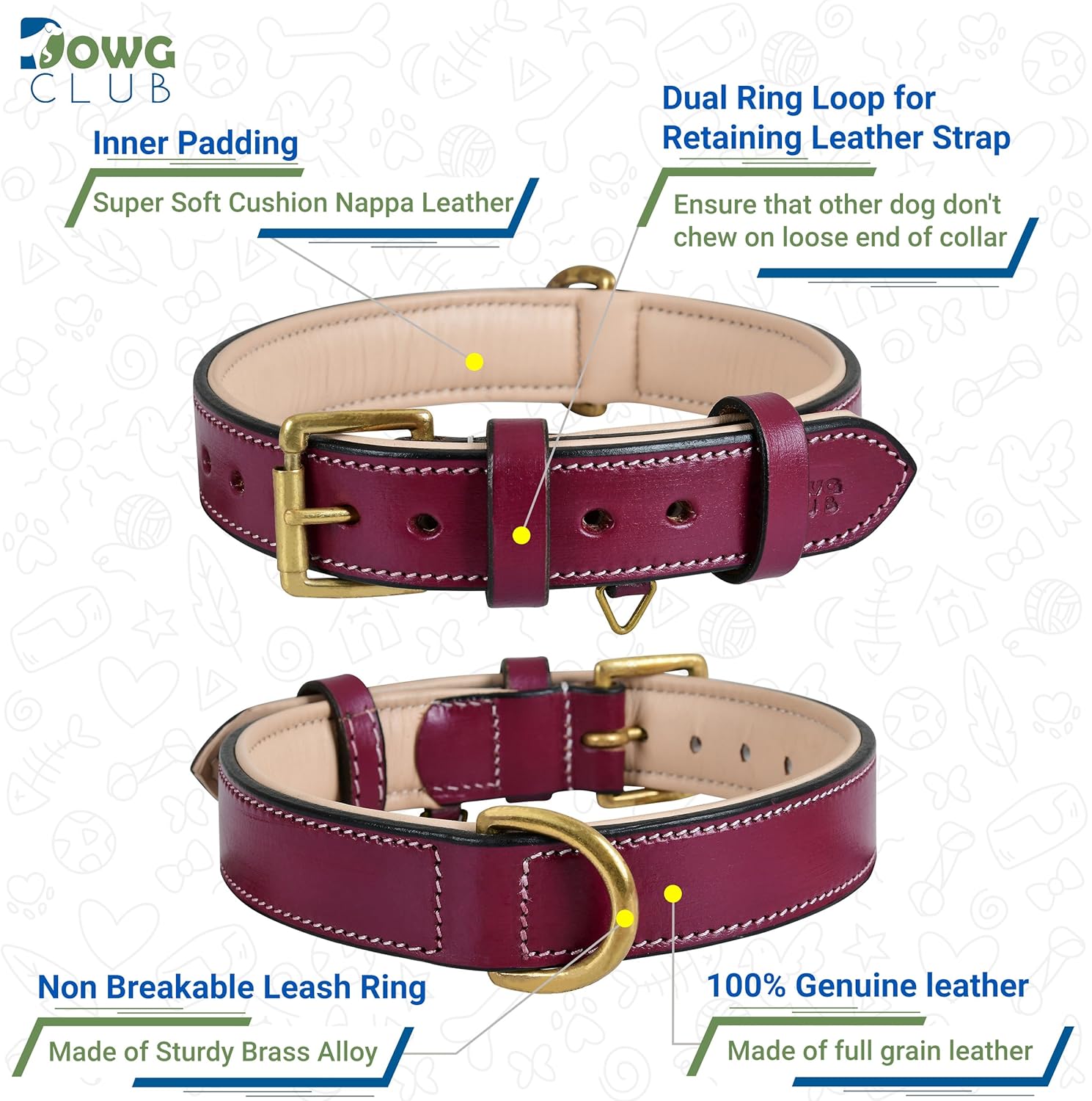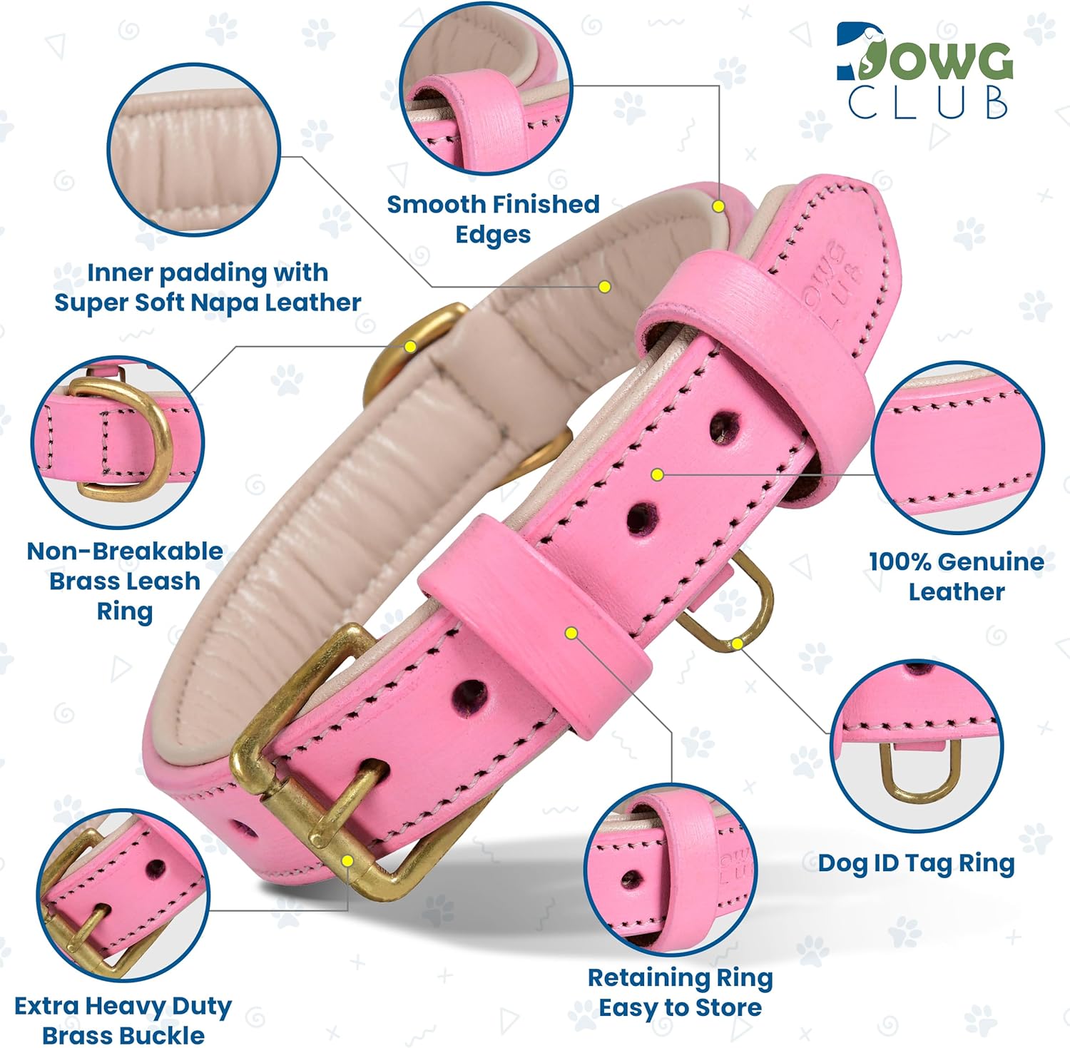 DowgClub | Genuine Leather Dog Collar | Full Grain, Heavy Duty | Comfortable, Strong | Best for Pups, Small, Medium & Large Breeds | Pink, Brown, Black, Tan