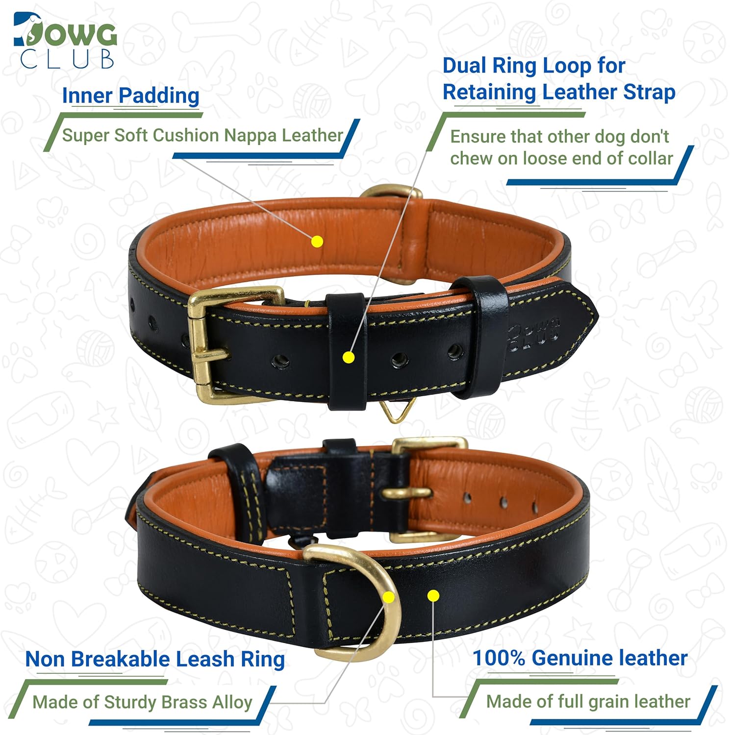 • Soft Napa Leather Lining with Waterproof Padding: Interior lined with breathable lamb (sheep) napa leather and waterproof EVA padding for enhanced comfort. Keeps your dog’s neck irritation-free even on long walks or during play.