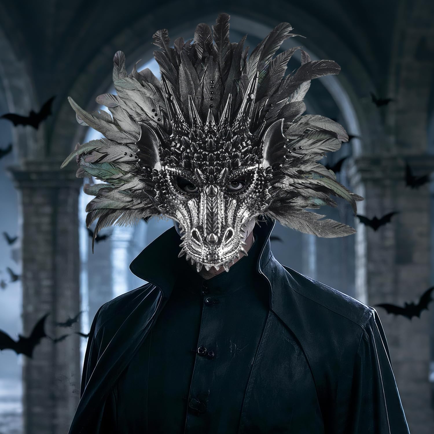 Dragon Cosplay Mask for Halloween and Carnival Half Face Dragon Mask Realistic Design Masquerade,Festivals Costume Accessory
