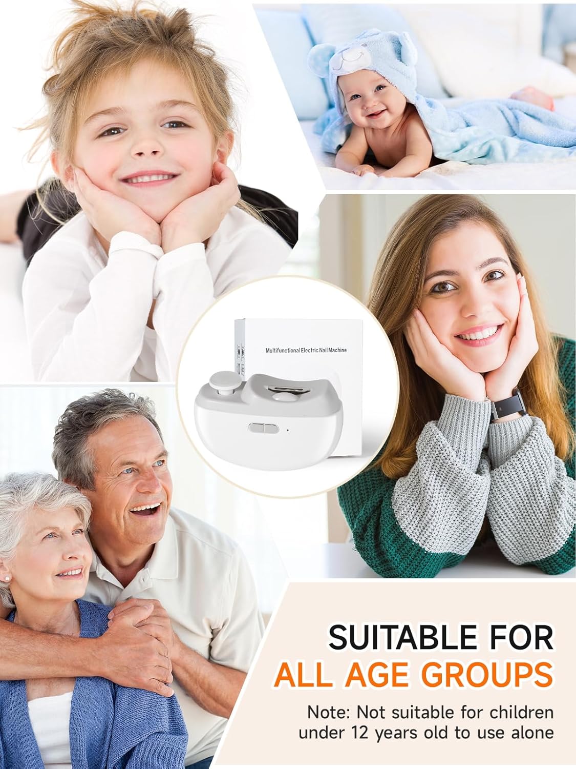 𝗛𝗶𝗴𝗵 𝗦𝗮𝗳𝗲𝘁𝘆 𝗳𝗼𝗿 𝗕𝗮𝗯𝗶𝗲𝘀: The nail trimmer has a spiral hidden blade that can trim nails safely, gradually and smoothly. Follow up with an electric nail file to provide a gentle yet precise polish, leaving your nails smooth and snag-free. The electric nail trimmer with ergonomic design is especially suitable for nail care on babies or people with hand arthritis