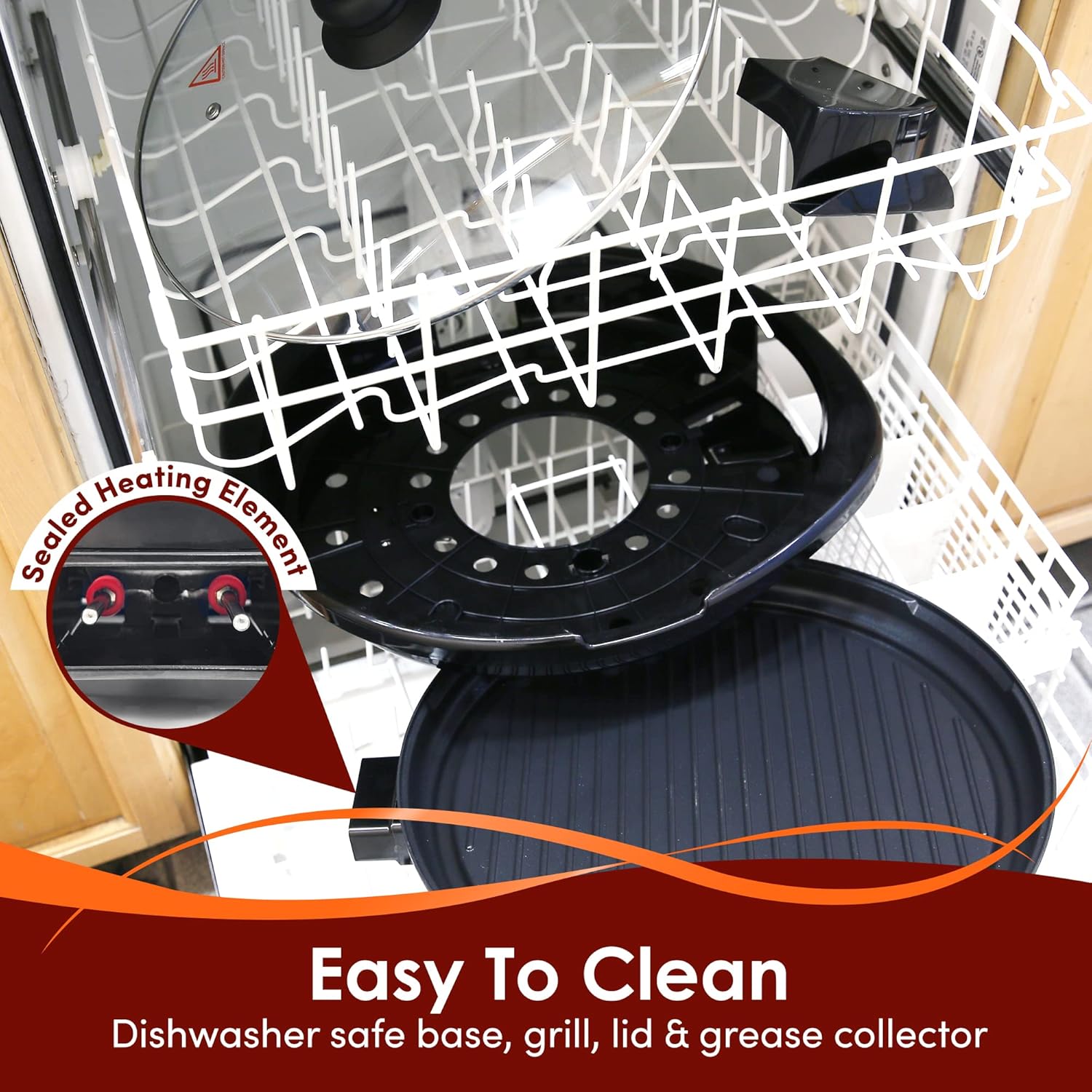 - DISHWASHER SAFE PARTS – We know that cleaning your grill can be extremely frustrating, that’s why we’ve made sure that all parts of our electric grill are detachable and dishwasher safe. Now you can spend less time cleaning up and more time enjoying your delicious grilled food