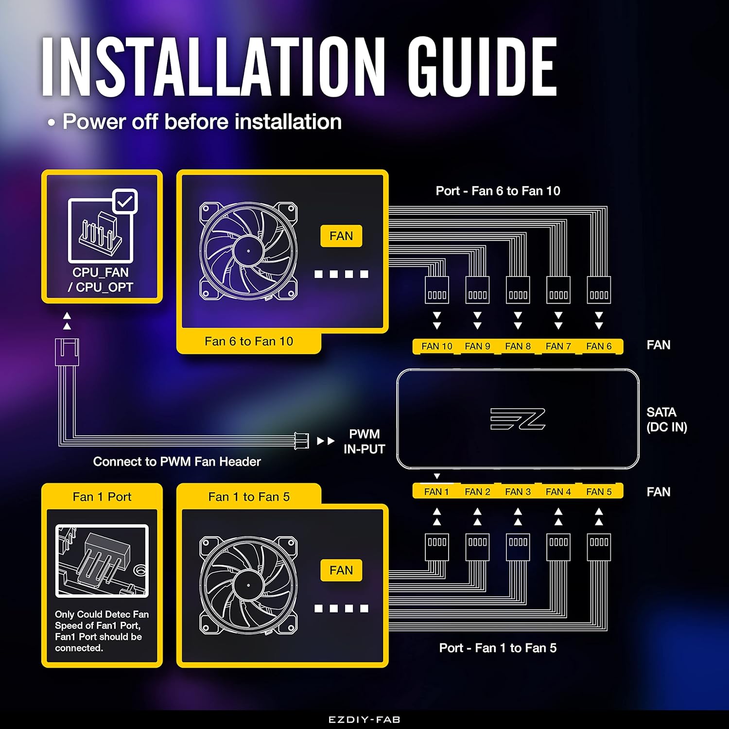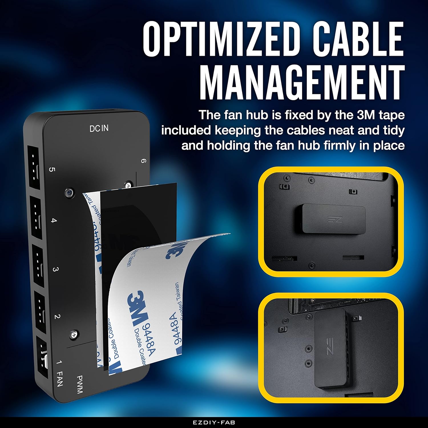 EZDIY-FAB 10 Port PWM Fan Hub,Splitter for 4-Pin & 3-Pin Fans,Only Use One MB Header