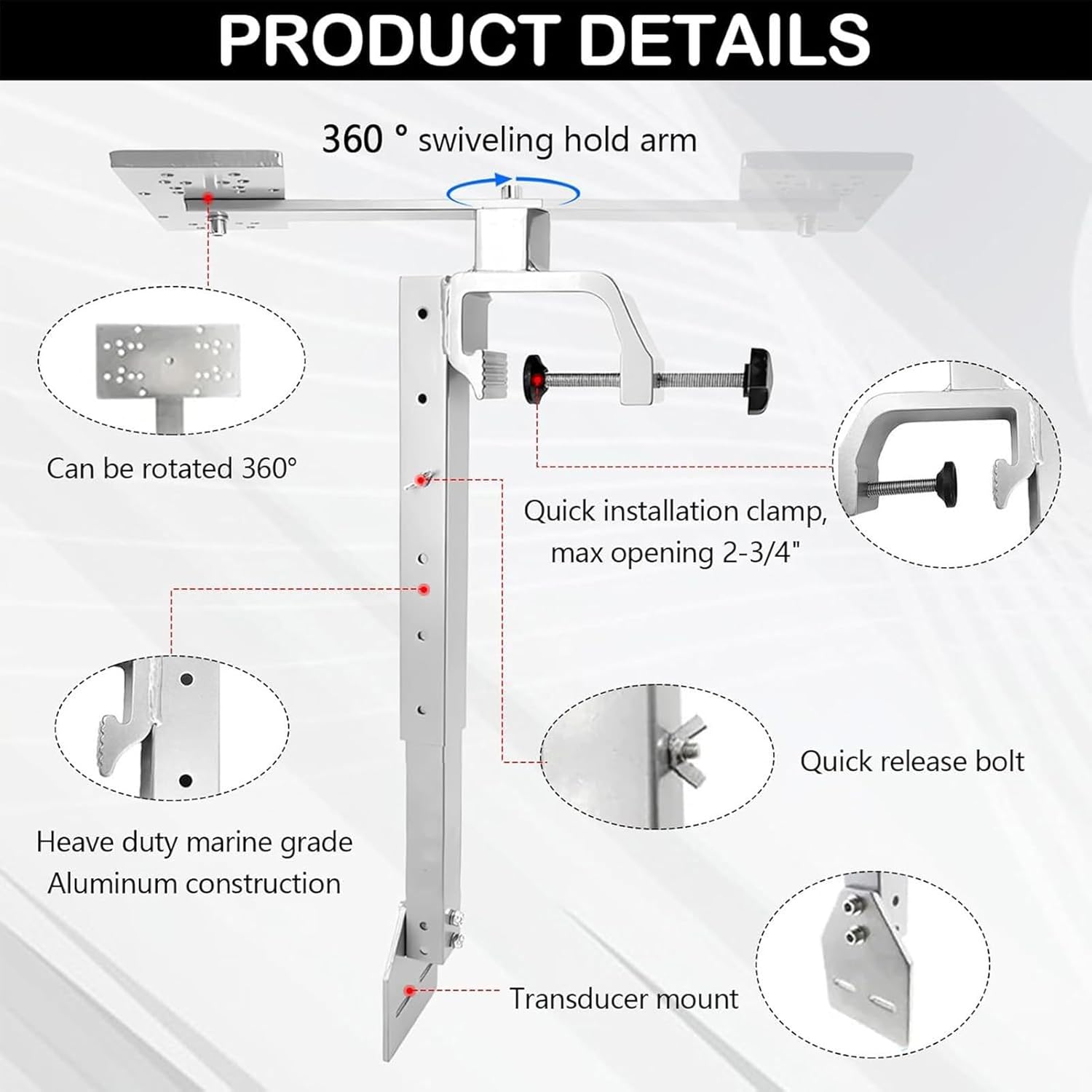 Fish Finder Mounts for Boats - Portable Fish Finder and Depth Finders for Kayaks | Saltwater Fishs Bracket | 360° Rotation Height Adjustment Mount Holder Bracket Boat Kayak Fishing Saltwater Marine |