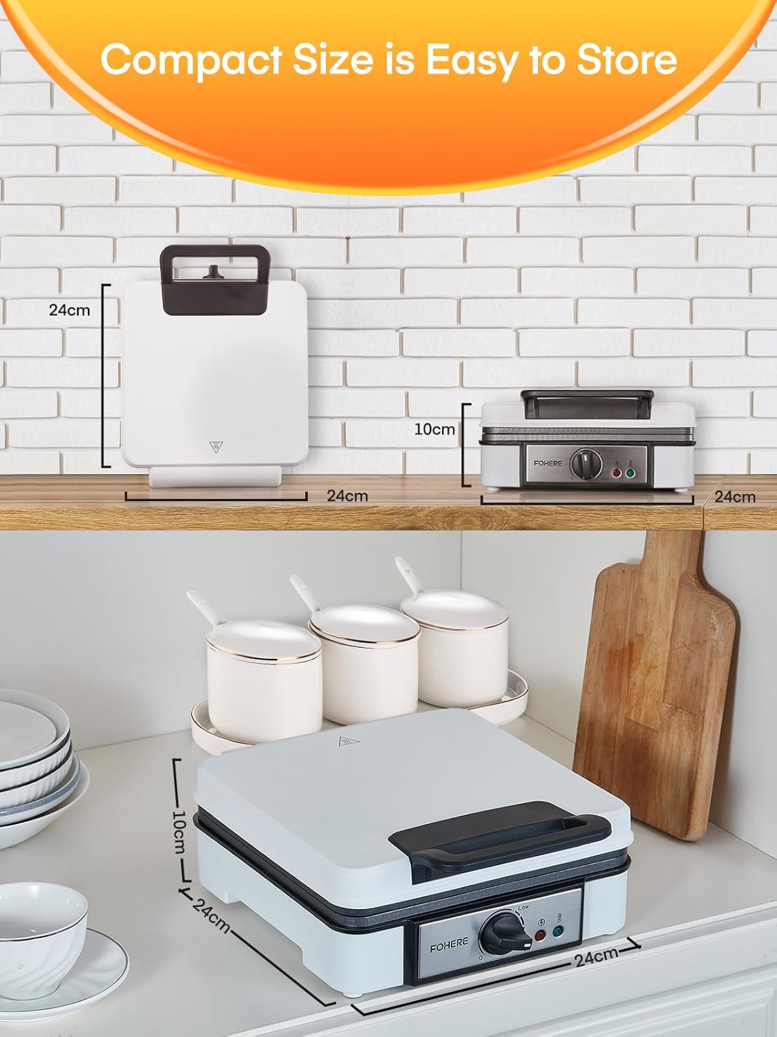 • 【Updated User-friendly Design】1. With heat-resistant handles for taking it anywhere. 2. A green light on the waffle maker to indicate when it's preheated and roughly when the waffles are done. 3. Compact storage with cord wrap and handle lock, making storage easier.