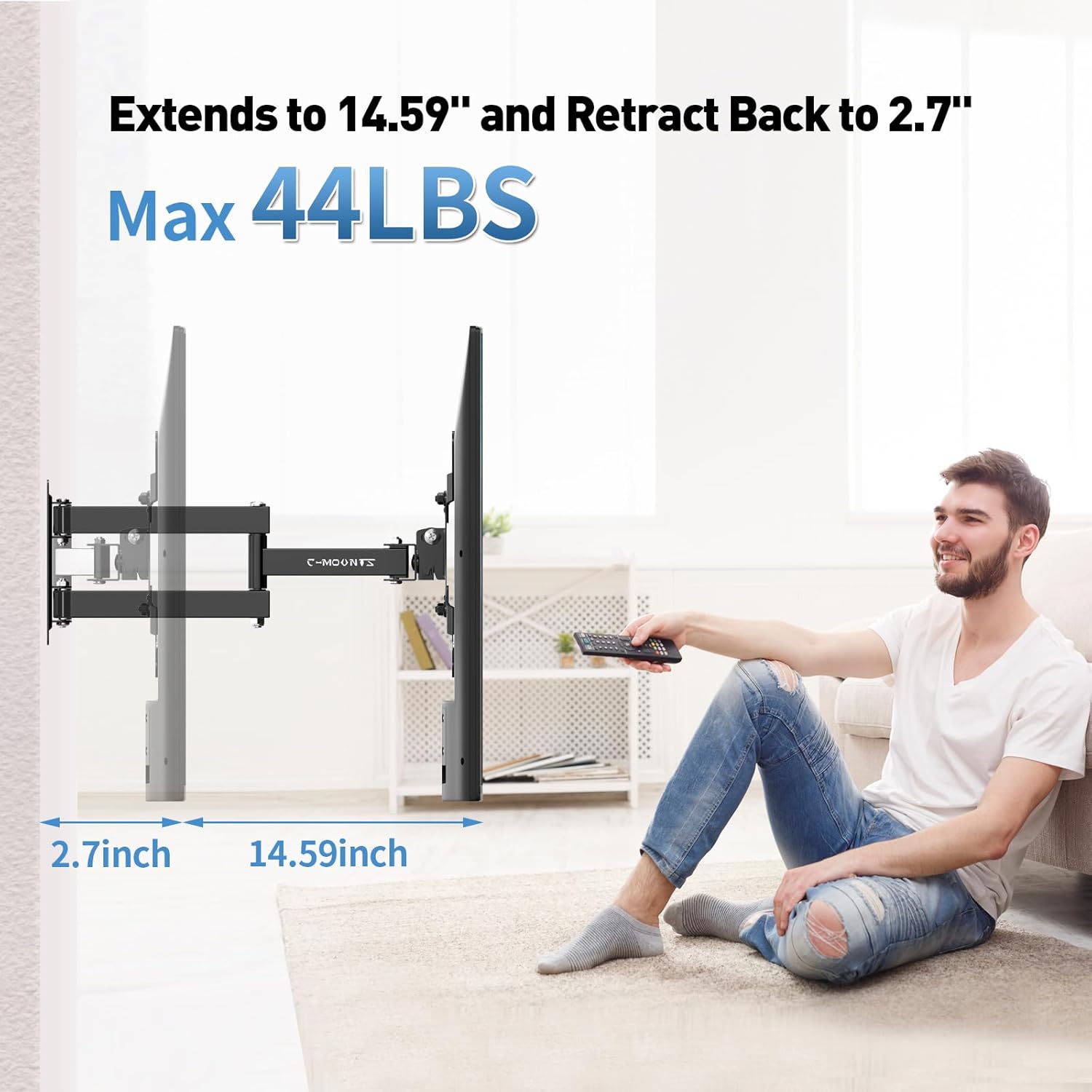• Cater to Viewing Positions: TV mounts can pull out to 14.59" or retract back to 2.7" from the wall. Save space and achieve a sleek and tidy appearance. The full motion TV wall mount features 180° swivel and +9°/-11° tilt to position your TV exactly where you want it