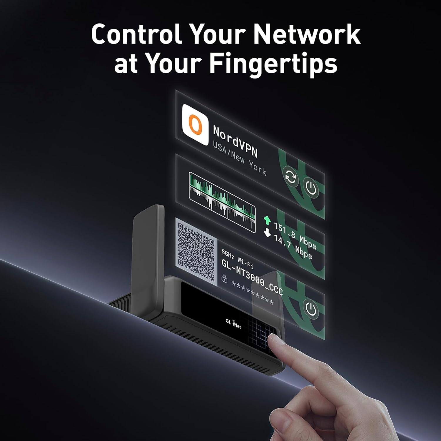 - 【NETWORK CONTROL WITH TOUCHSCREEN SIMPLICITY】Slate 7’s touchscreen interface lets you scan QR codes for quick Wi-Fi, monitor speed in real time, toggle VPN on/off, and switch providers directly on the display. Color-coded indicators provide instant network status updates for Ethernet, Tethering, Repeater, and Cellular modes, offering a seamless, user-friendly experience.