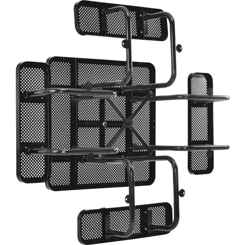 Need a place to kick back outdoors? Provide a place to sit, relax, or eat with The Global Industrial™ 46" Square Outdoor Steel Picnic Table in Black. This commercial picnic table is ideal for providing high-traffic areas with seating for a place to sit, such as parks, campuses, school yards, and more. Each table is made using heavy-gauge metal mesh material with a durable thermoplastic coating on both the benches and tabletop with corners that are beveled for safety. This protective coating presents a smooth, high-gloss surface that stays cool-to-the-touch, allowing comfortable seating on even the sunniest days. The thermoplastic coating is designed to resist fading, mold, and vandalism; and will also help ensure maintenance-free durability through years of high-traffic usage. Its galvanized steel frame is shielded treated with a zinc-rich black powder coat finish that provides rust-prevention and resilience against the elements. The additional zinc-rich layer also offers an extra superior coating to withstand corrosion in any environment. Perforated metal material ensures the table is able to retain structural integrity throughout use. Mounting tabs allow anchoring to the ground for stability and security. 7-Year Limited Warranty.