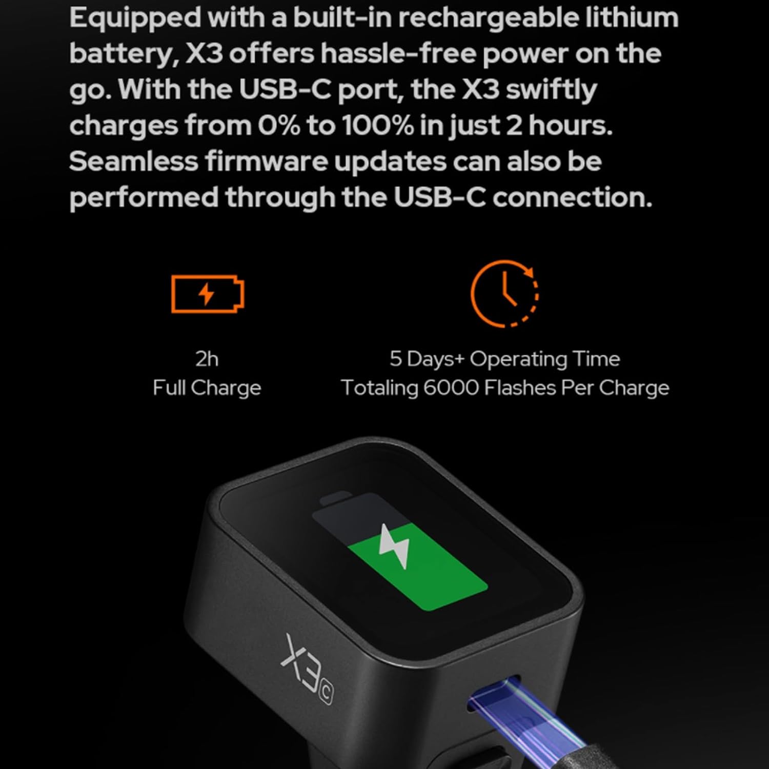 Easy-Mounting, Durable Hotshoe: Elevate your photography experience with the X3's robust hotshoe designed for seamless mounting and optimal camera hotshoe protection. Say goodbye to installation hassles. The easy-mounting hotshoe ensures trouble-free mounting, so you can focus on your shot, not the setup