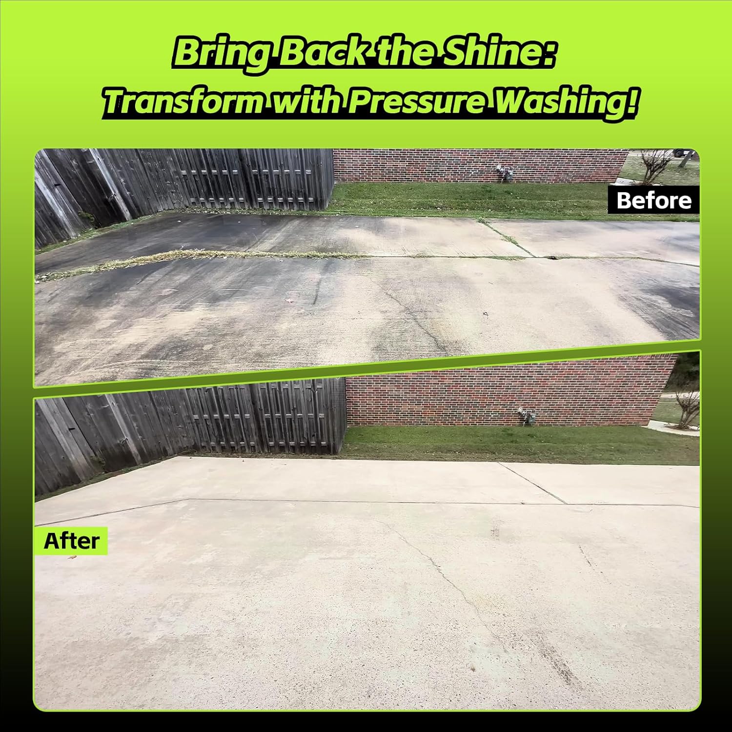 •  【BLAST AWAY GRIME】The Electric Pressure Washer unleash 2500 Max PSI and 2.4 GPM for POWERFUL cleaning power to remove most of the stains or dirt in home living scenarios. No more being helpless in the face of dirty fences, decks, outdoor furniture and cars