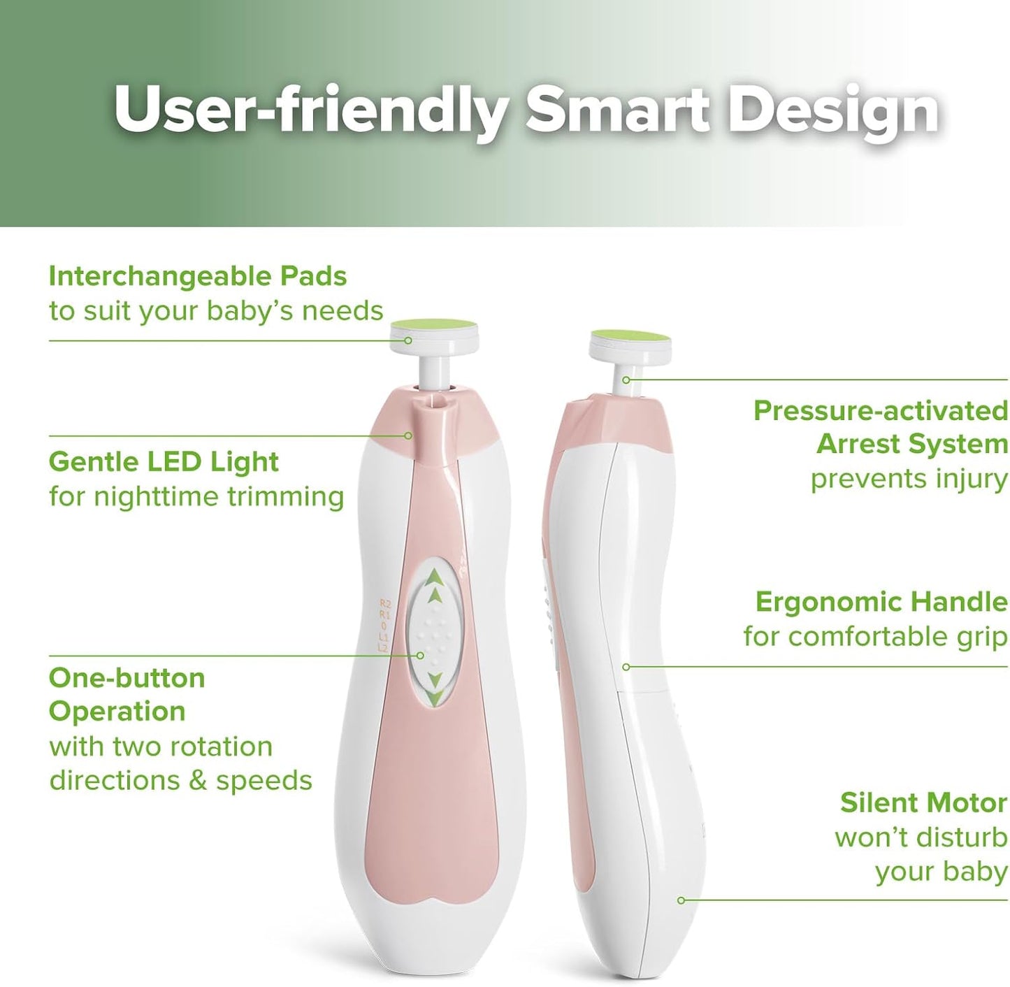 - SAFE & TENDER: Designed with a pressure-activated safety system, our electric nail trimmer is gentle on your baby's delicate fingers, preventing injuries and giving you peace of mind.