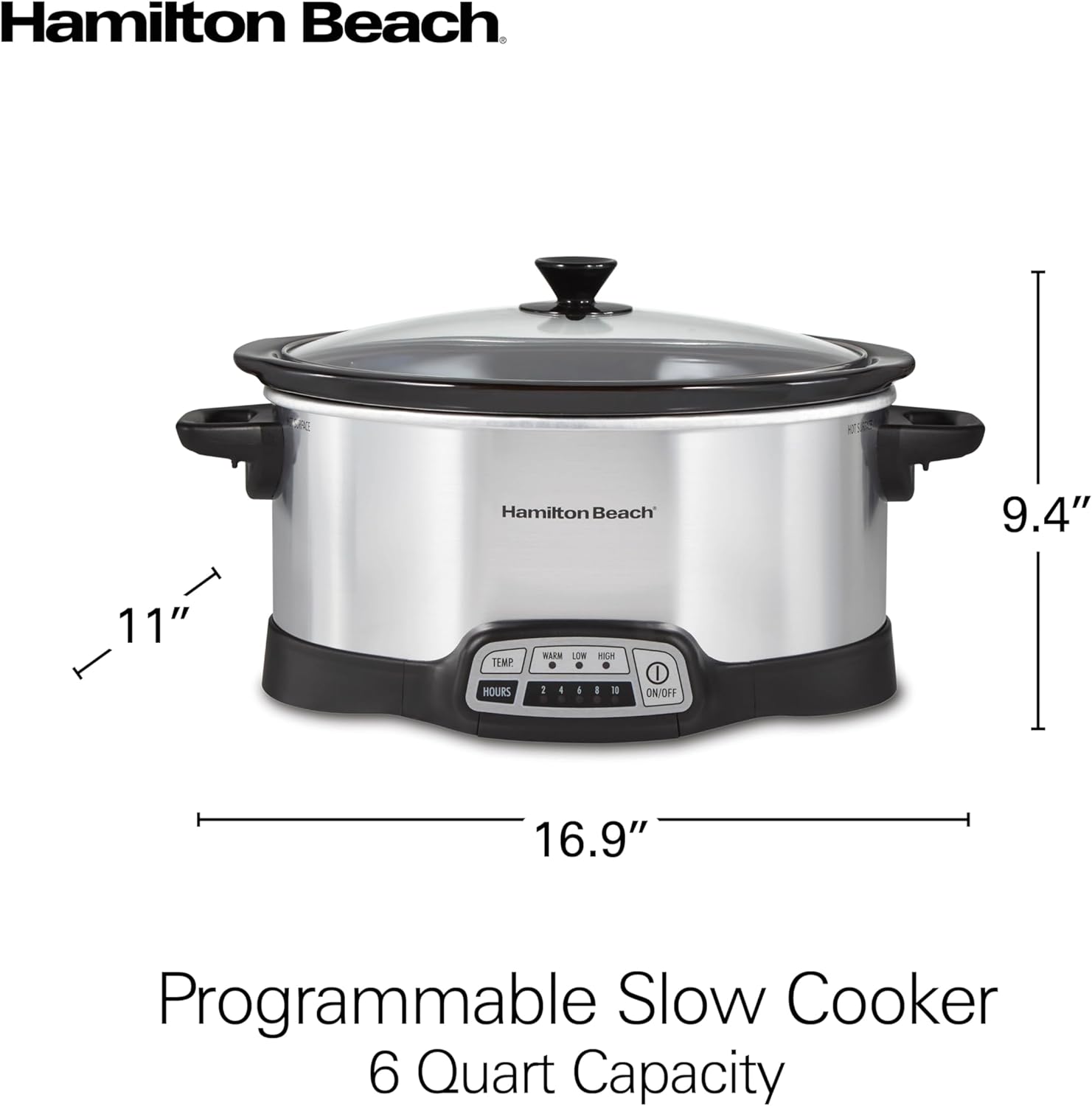 Hamilton Beach Programmable Slow Cooker, 6 Quart Capacity, Silver, 33463
