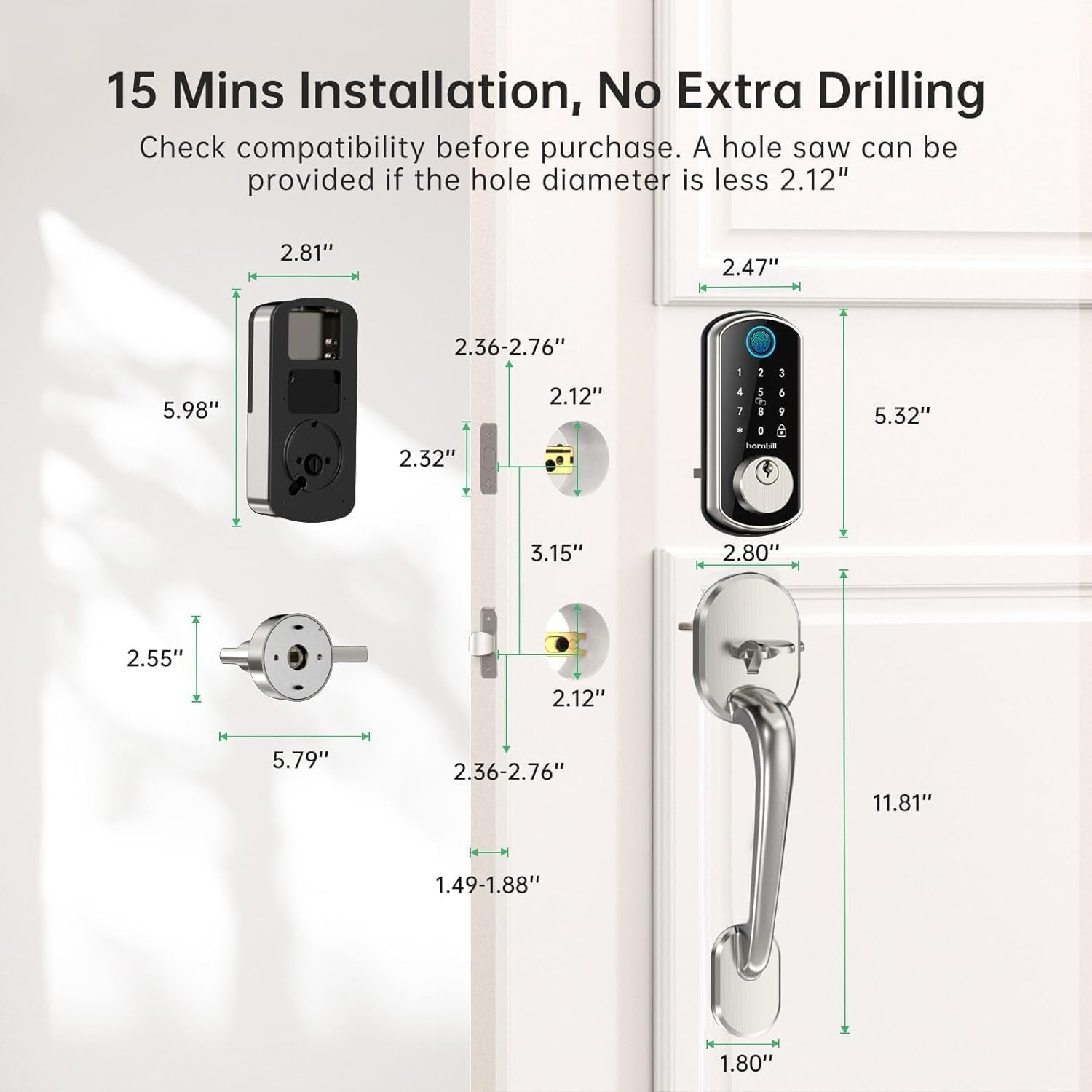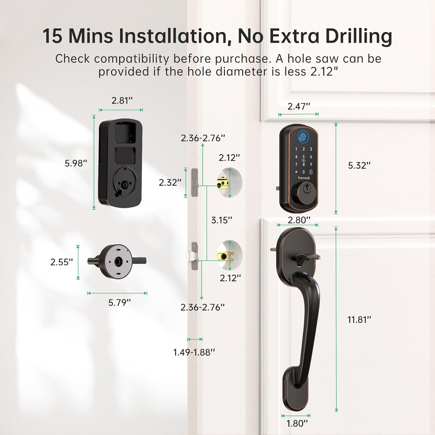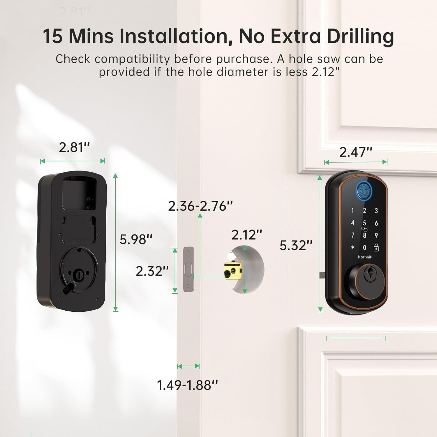 - Easy Installation: Install the front door lock with guaranteed fit on standard pre-drilled doors and complete the basic digital lock setup by following the voice prompts. All you need is a screwdriver.