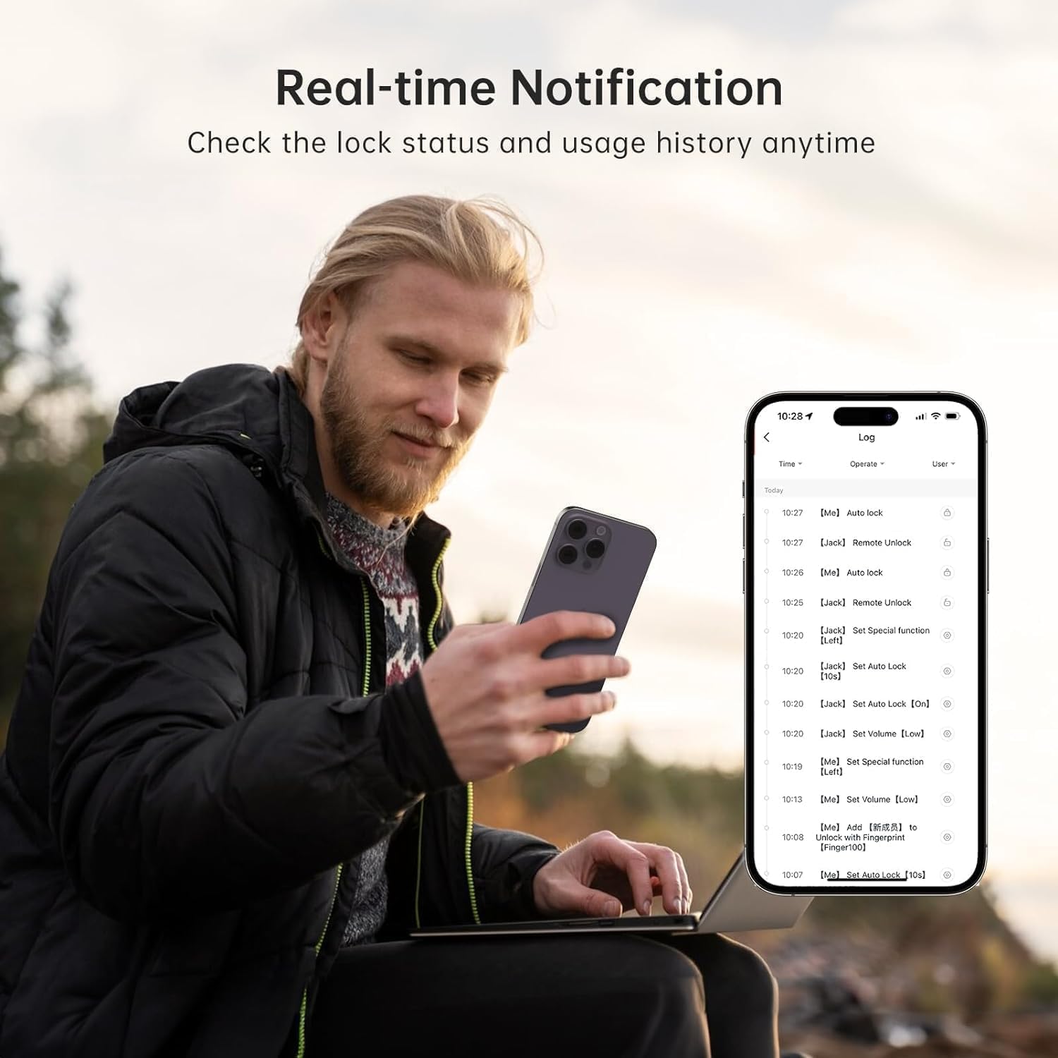 - Easy remote control: Simply add the included gateway to control your lock through the APP. You can lock and unlock, share guest access, view live access logs, and receive instant notification of any changes to the door status at any time.
