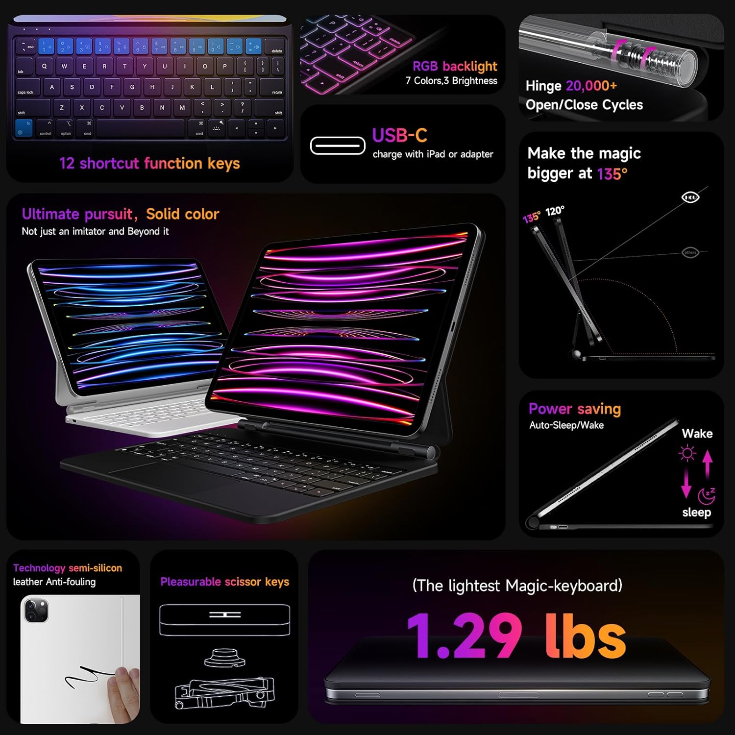 HOU Keyboard Case for iPad Air 11 inch 2024 (M2)&iPad Pro 11 Inch (4th/3rd/2nd/1st) Gen 2022,iPad Air 5th&4th Generation Case with Keyboard,Magic-Stand, Multi-Touch Trackpad,7 Colors Backlight,BlackPL17-B0BRJC7WVR