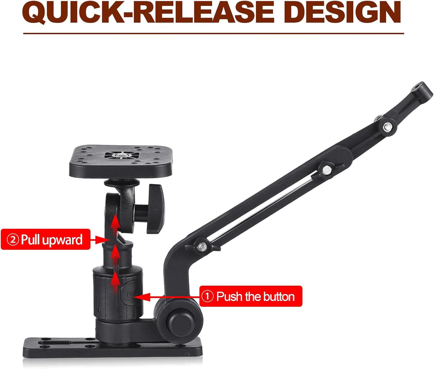 HXBER Kayak Fish Finder Mounting Plate Kayak Boat Transducer Mounting Arm with Adjustable Fishing Pole Holder