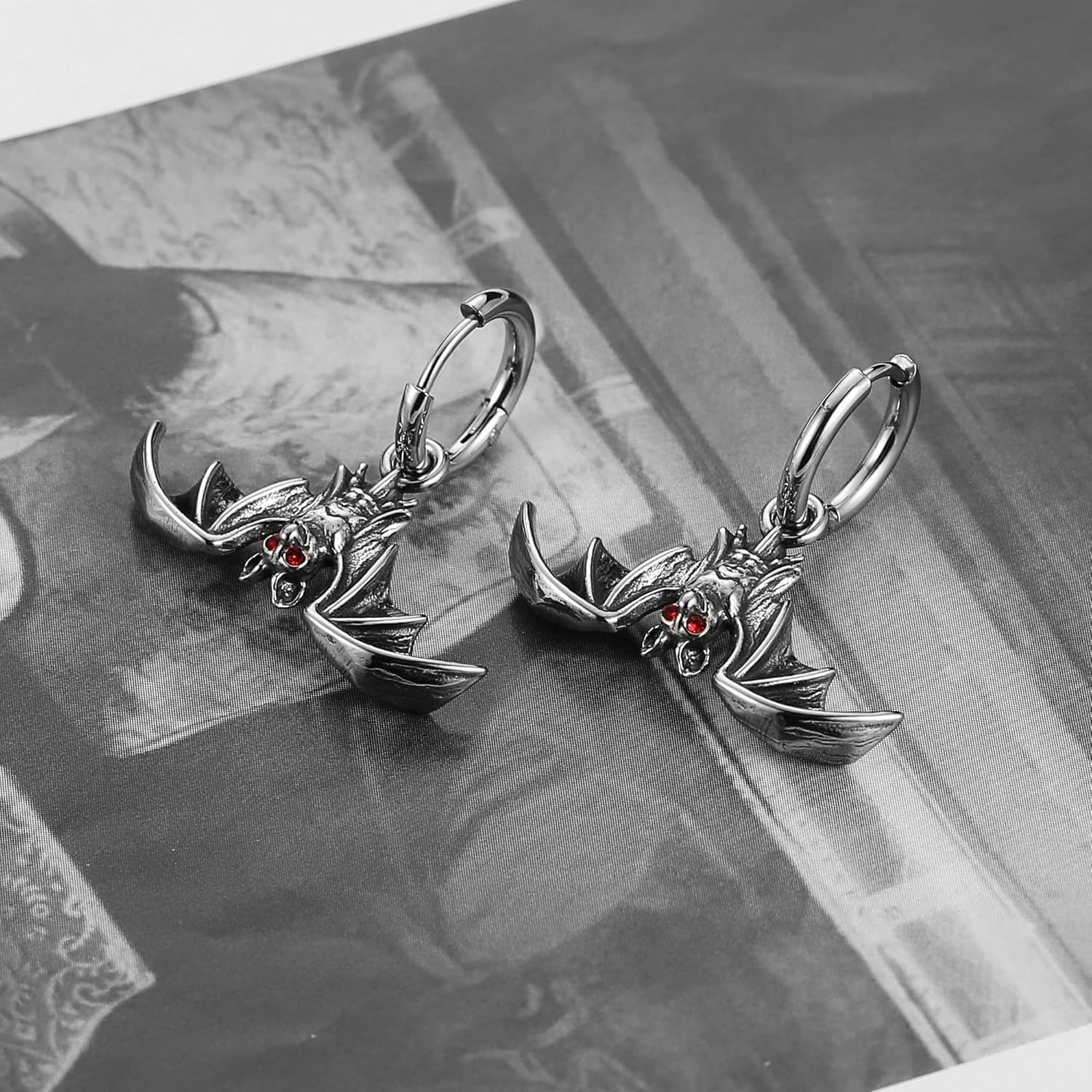 - Bat Earring: Unique gothic punk design featuring a vampire bat dangle drop earring, adding a touch of dark style and fashionable flair to your style.