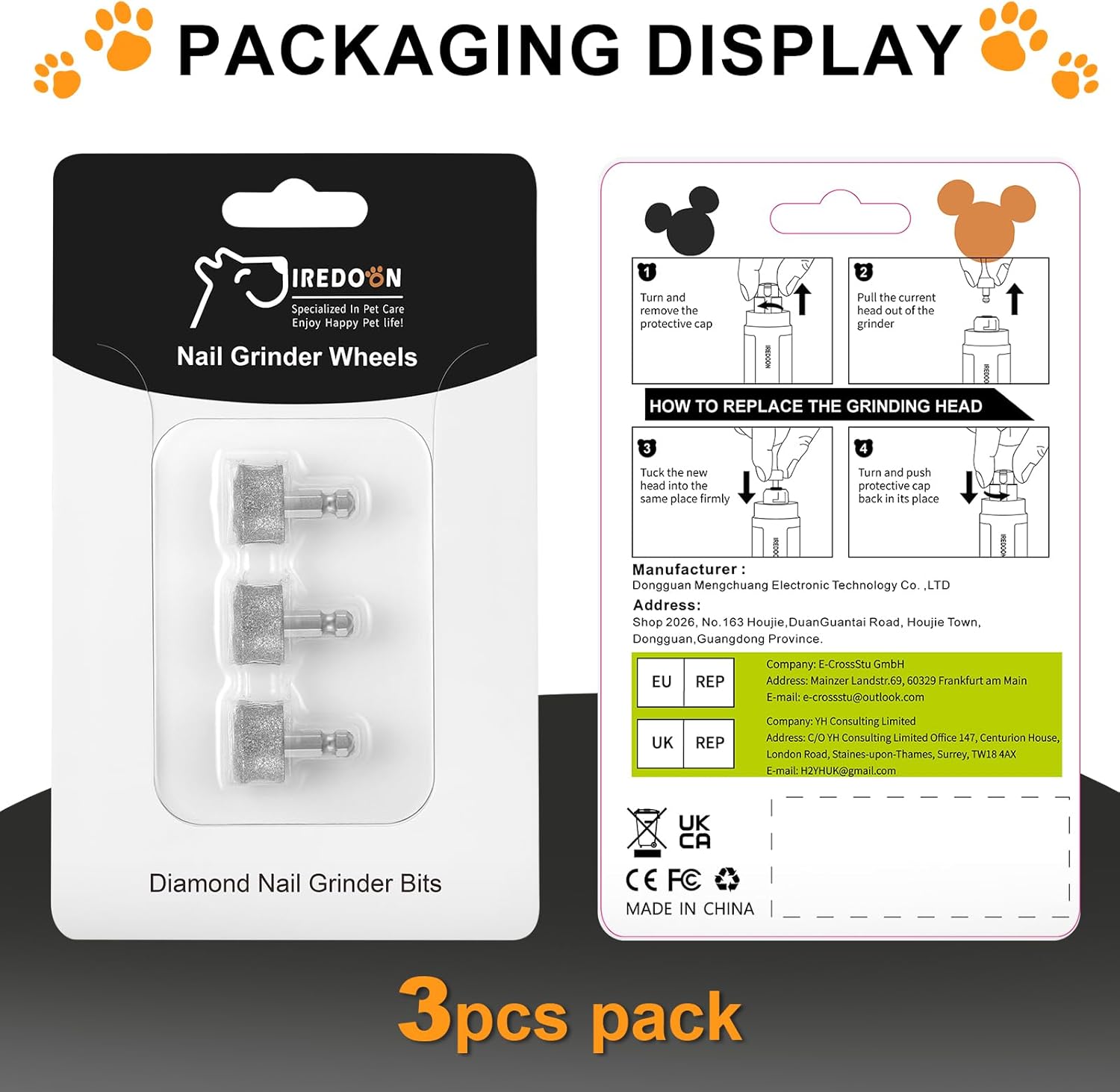 IREDOON Dog Nail Grinder Replacement Head-Integrated Grinding Head for Casfuy and Most Brands, Highly Efficient, Safe and Durable (3pcs)